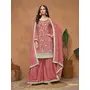Peach Embroidered Chinon Silk Semi Stitched Palazzo Suit