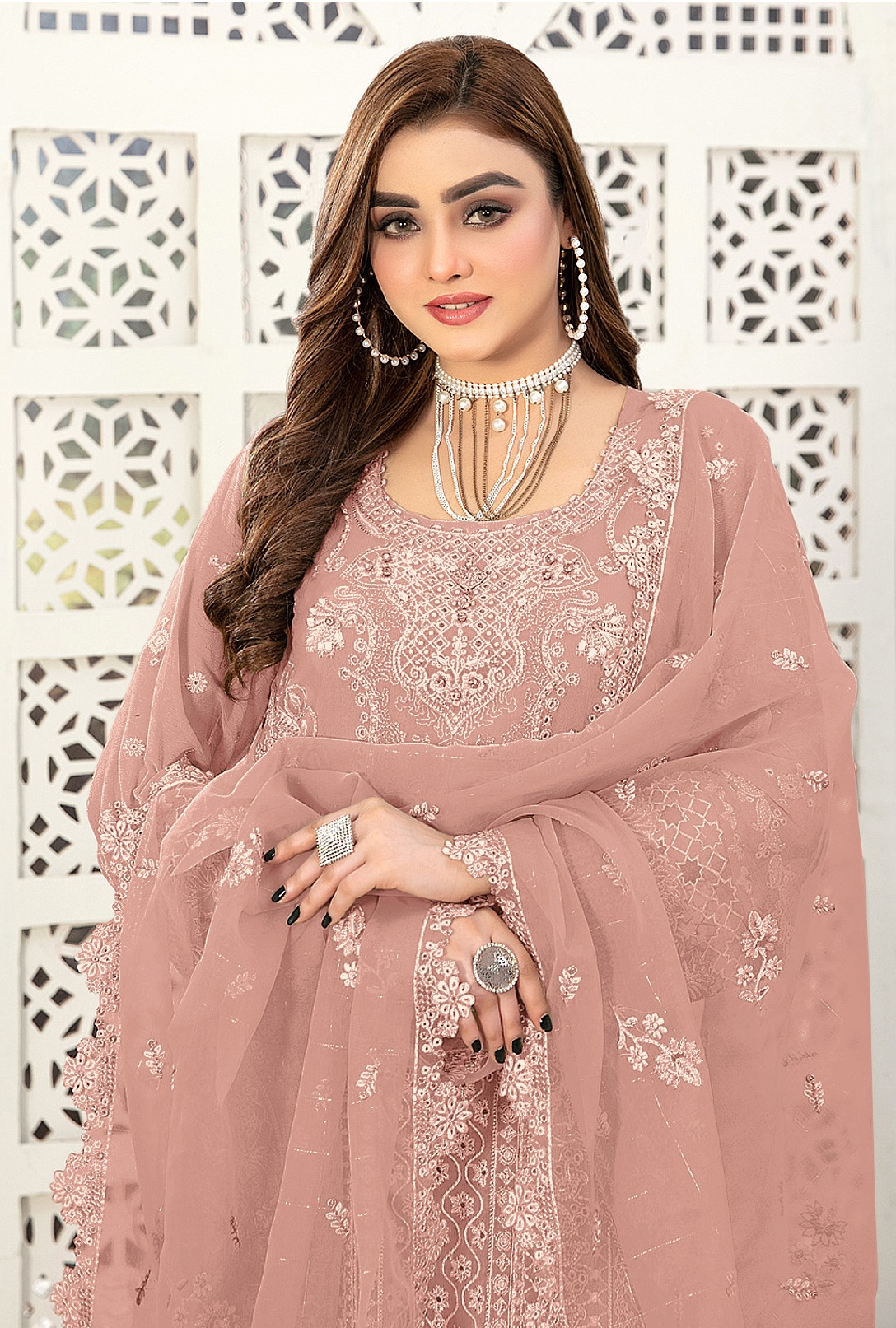 Peach Embroidered Faux Georgette Semi Stitched Salwar Suit