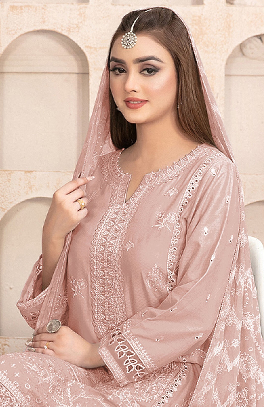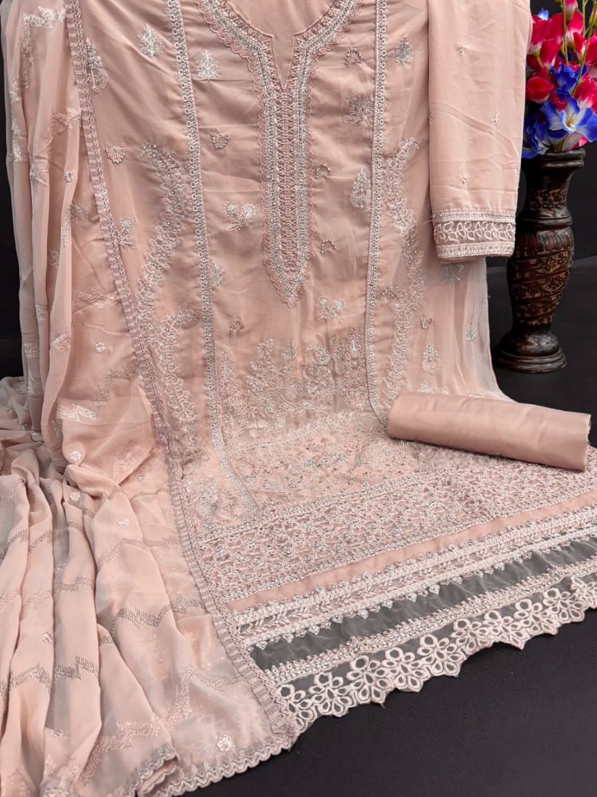 Peach Embroidered Faux Georgette Semi Stitched Salwar Suit