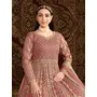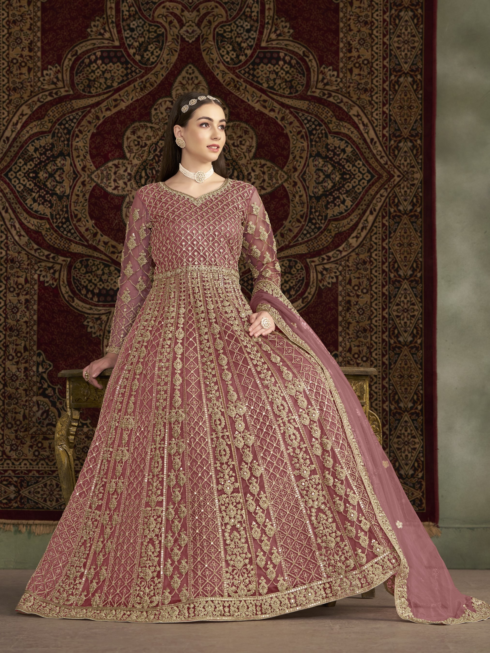 Peach Embroidered Net Semi Stitched Anarkali Suit