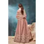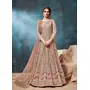 Peach Embroidered Net Semi Stitched Anarkali Suit