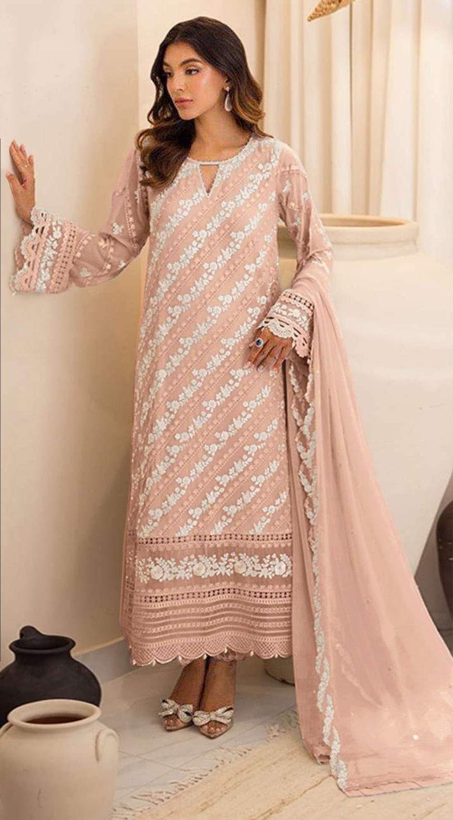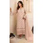 Peach embroidered sequence work heavy fox georgette unstitched suit with zarkan