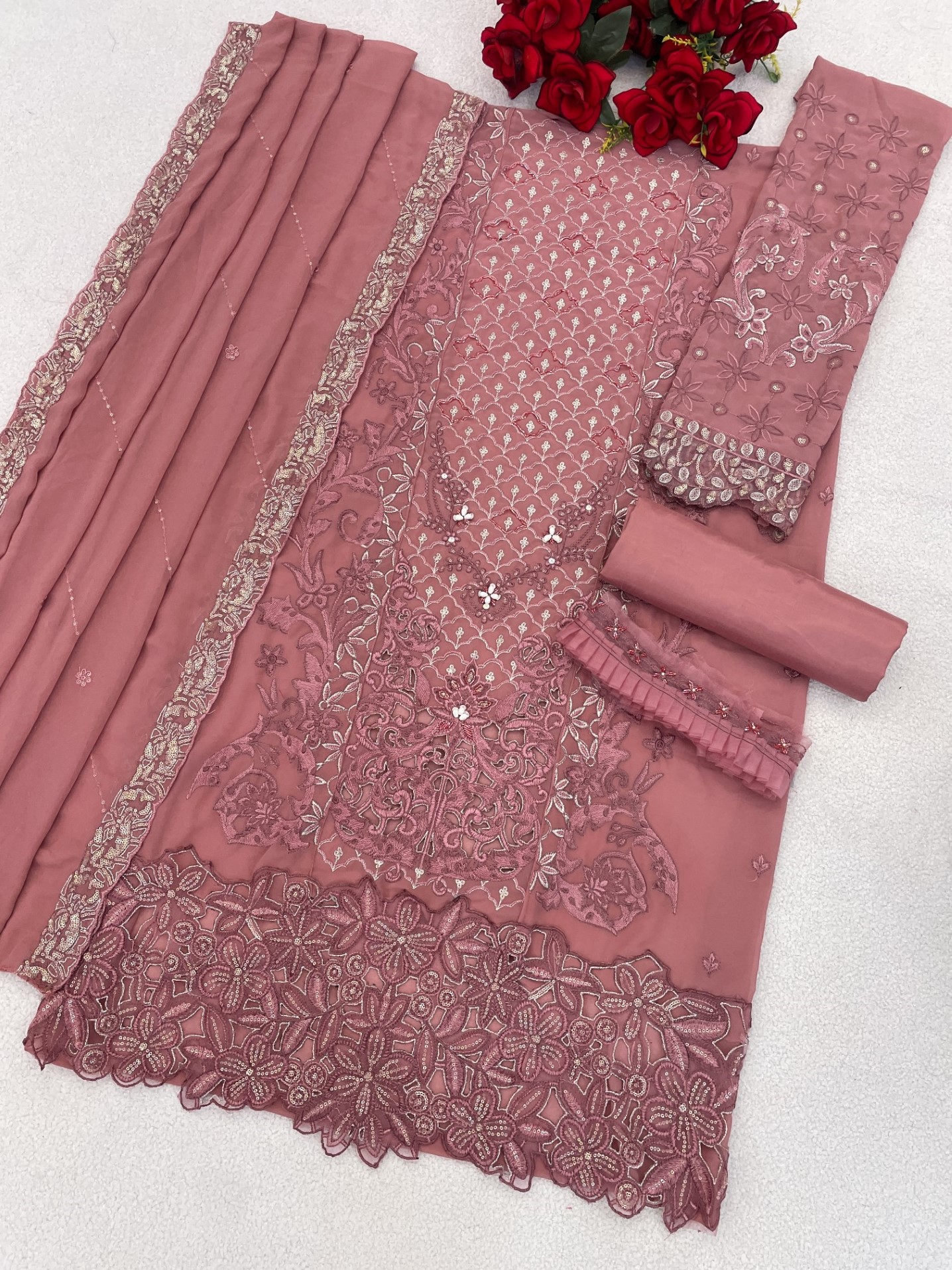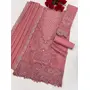 Peach Fox Georgette Semi Stitched Suit with Embroidery Sequence Work