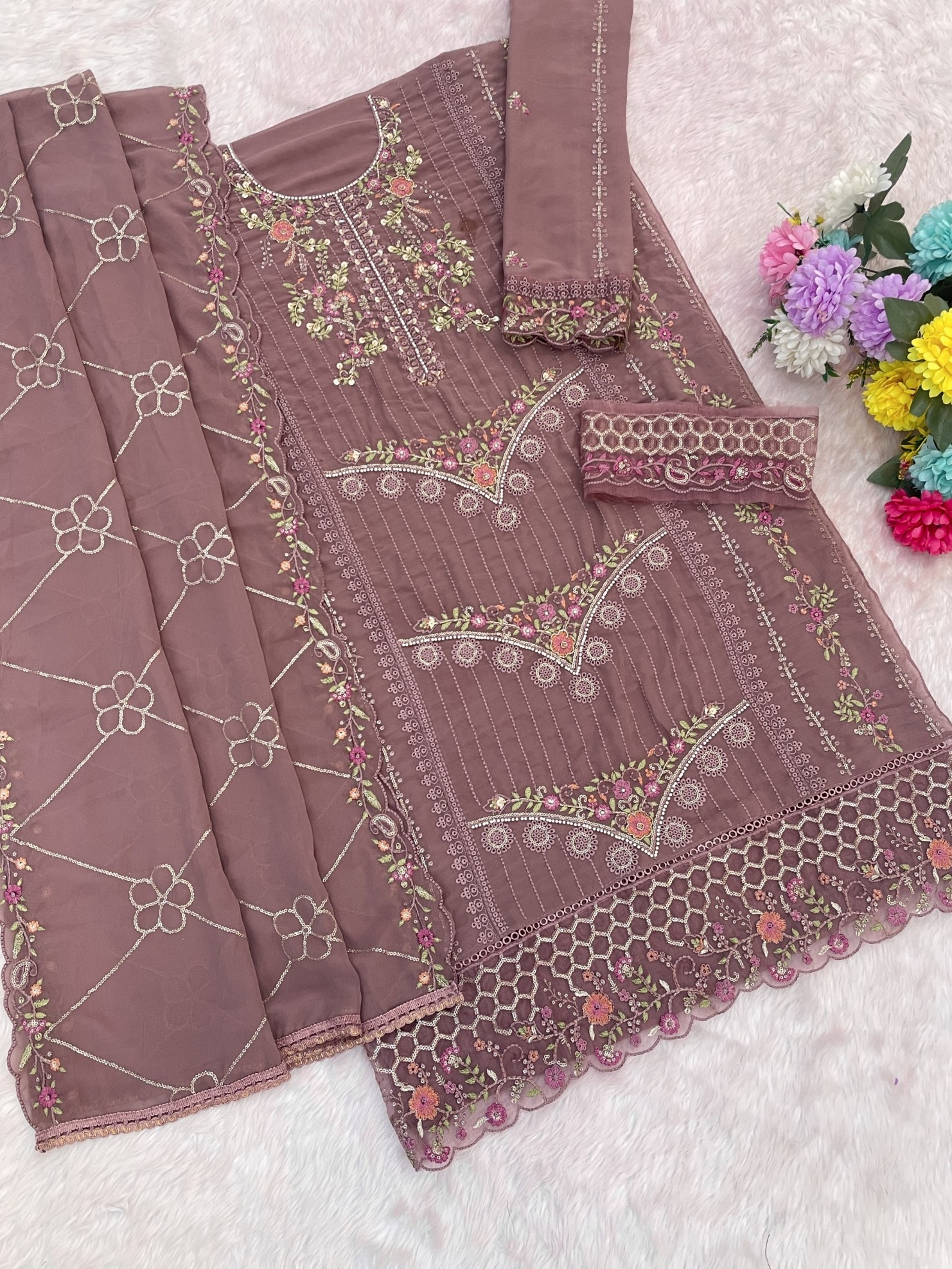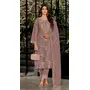 Peach Fox Georgette Semi Stiutched Suit with Embroidery Sequenc & Khatli Work