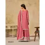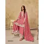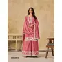 Peach heavy chinon semi stitched palazzo suit with embroidey work