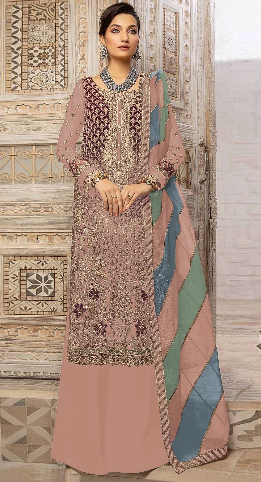Peach Heavy Fox Georgette Embroidery Plazzo Suit