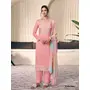 Peach Moonga Silk Semi Stitched Suit with Embroidery Sequence Work