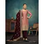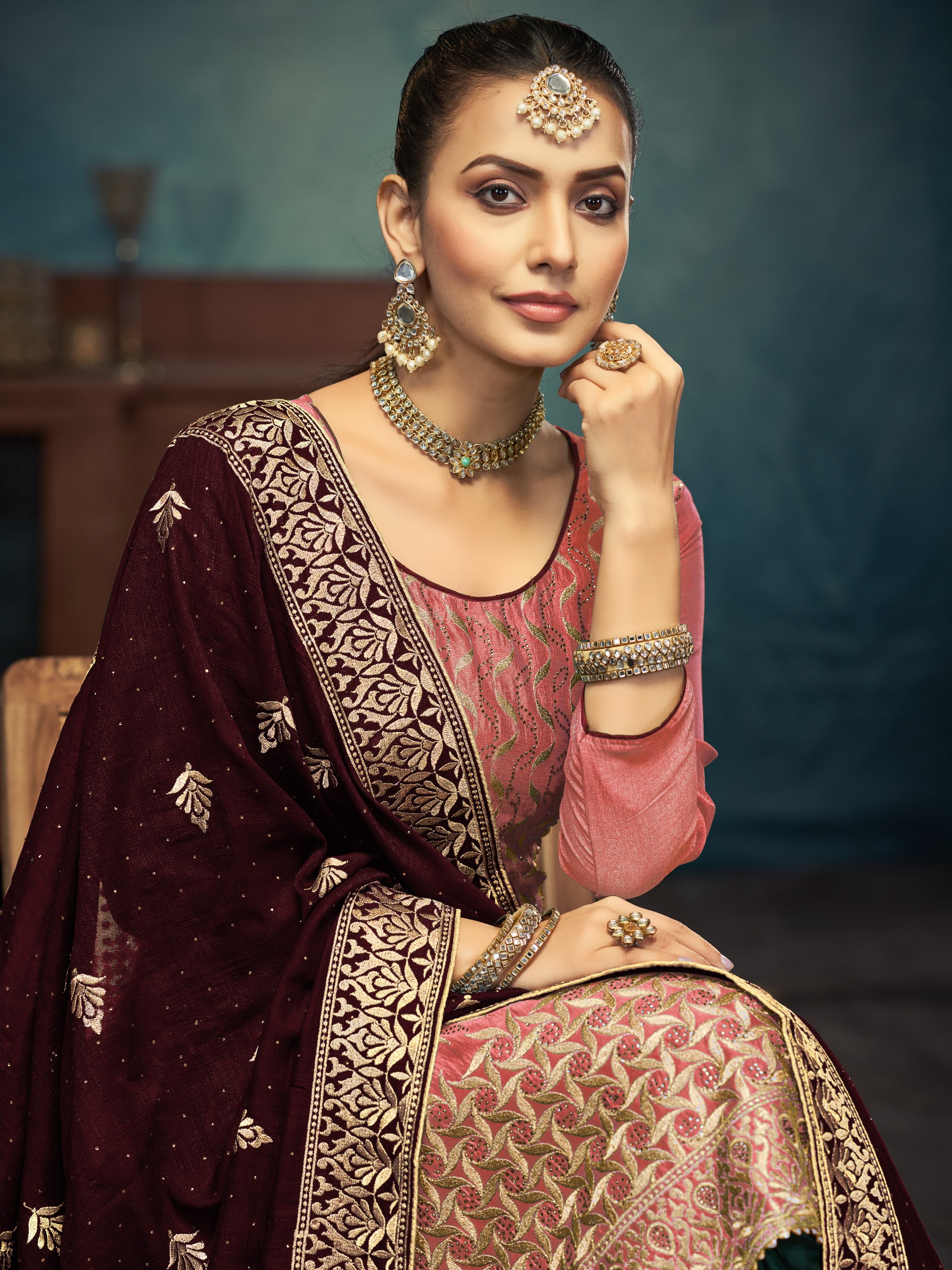 Peach Premium Embroidered with servoswaki daimond Vichitra Silk Semi Stitched Salwar Suit
