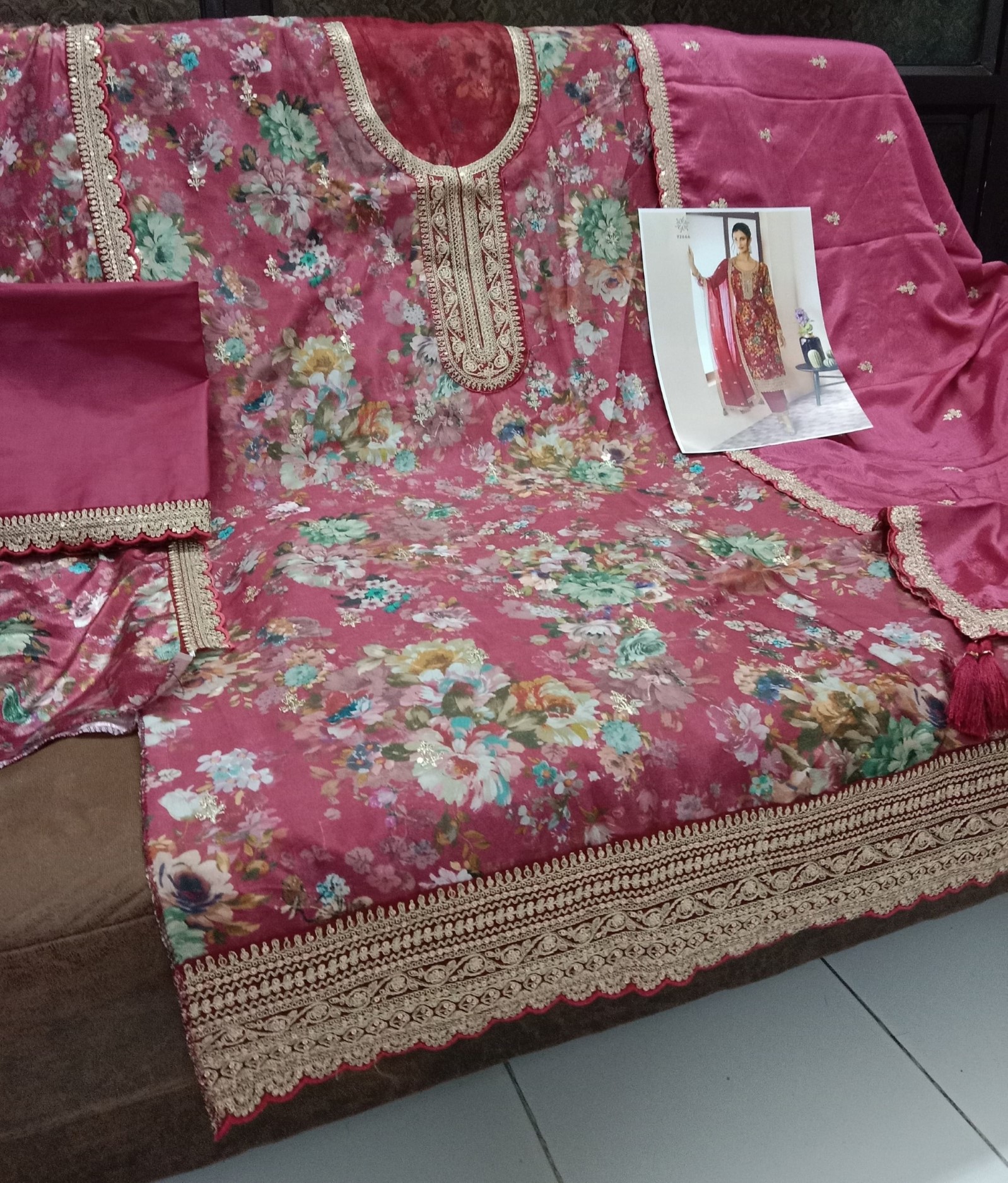 Pink Chinon Digital Print Sequence Embroidered Semi-Stitched Salwar Suit
