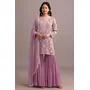 Pink Embroidered Faux Georgette Semi Stitched Sharara Suit