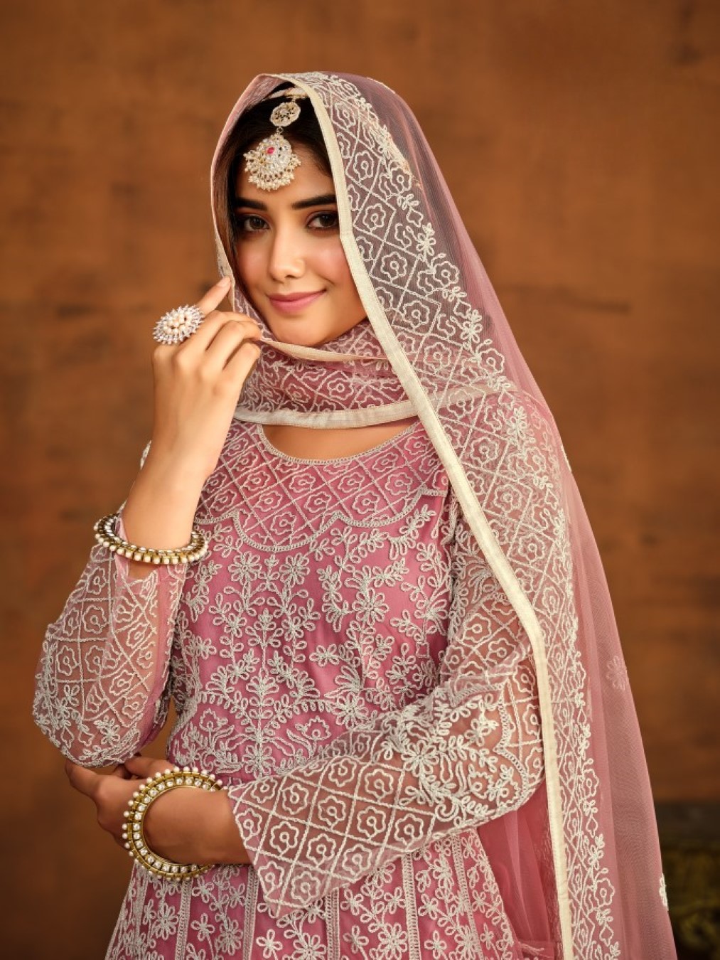 Pink Embroidered Net Semi Stitched Anarkali Suit