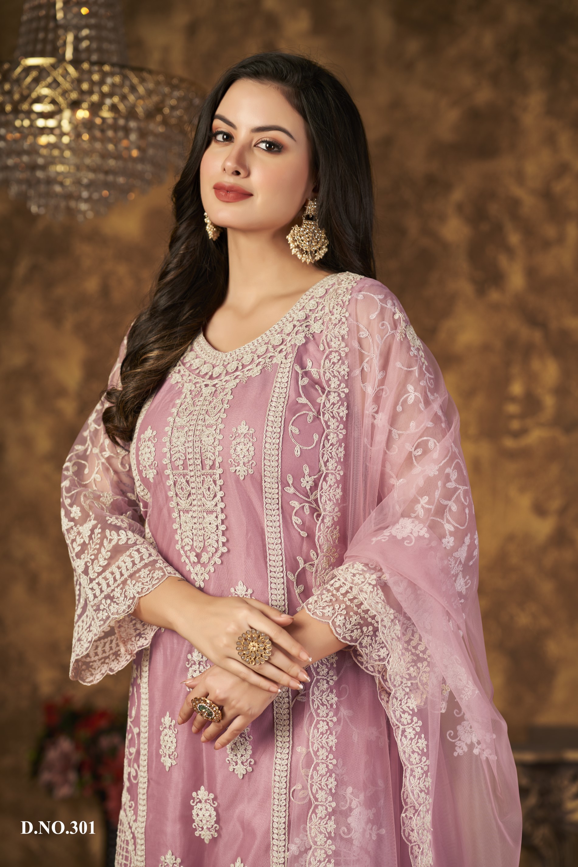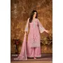 Pink Embroidered Net Semi Stitched Plazzo Suit