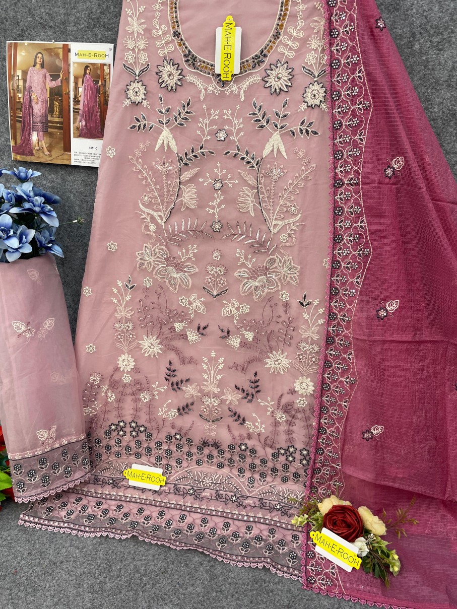 Pink Embroidered Organza Semi Stitched salwar Suit