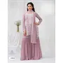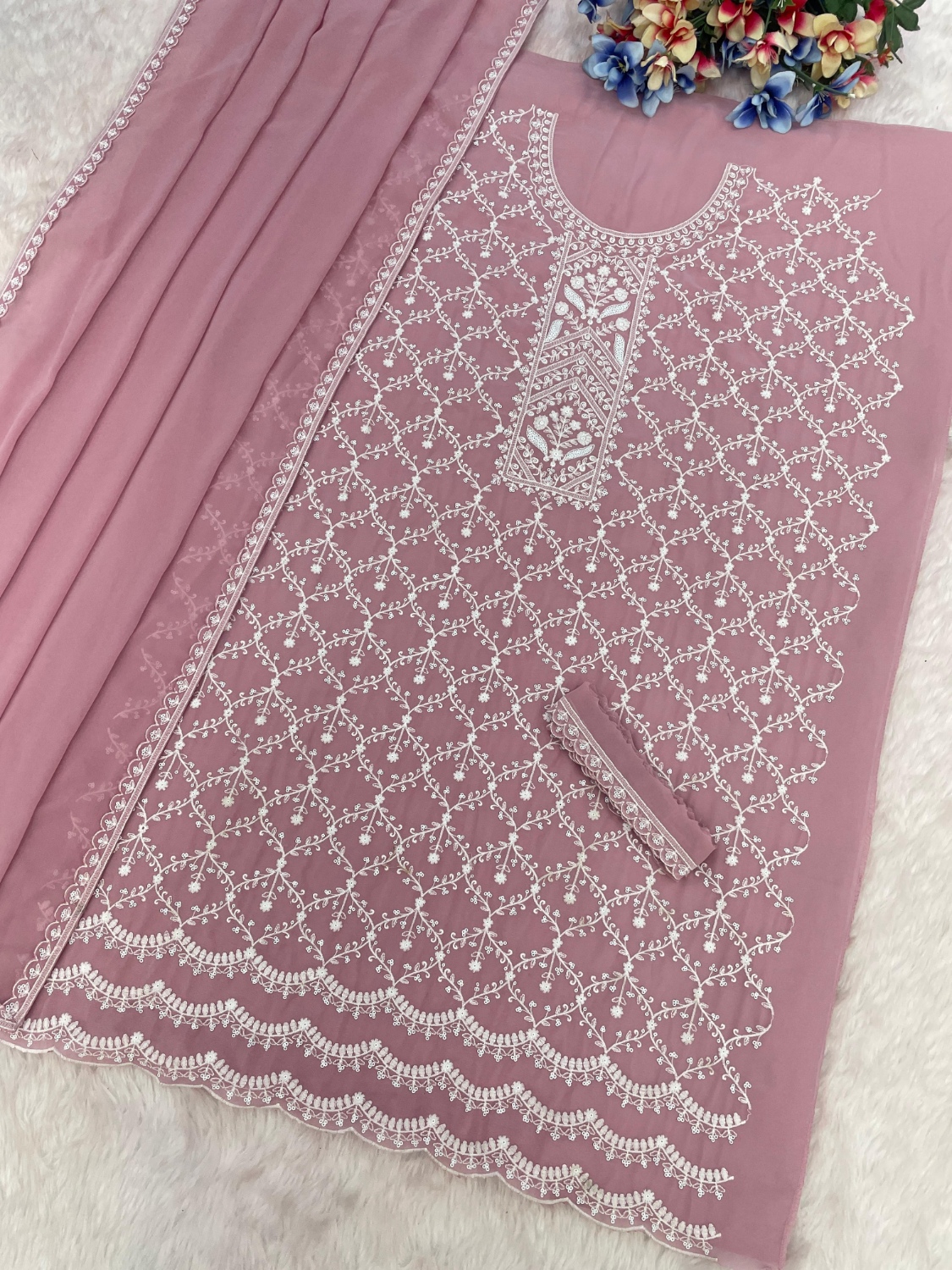 Pink Faux Georgette Semi Stitched Suit with Embroidery Cotton Thread & Sequence Work