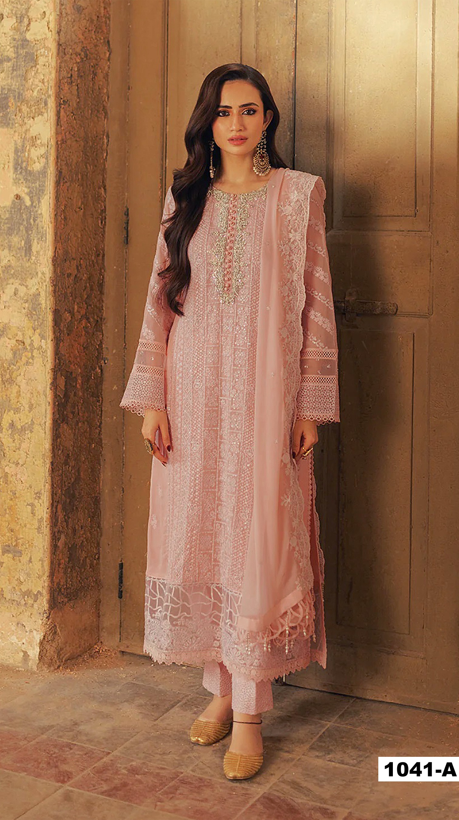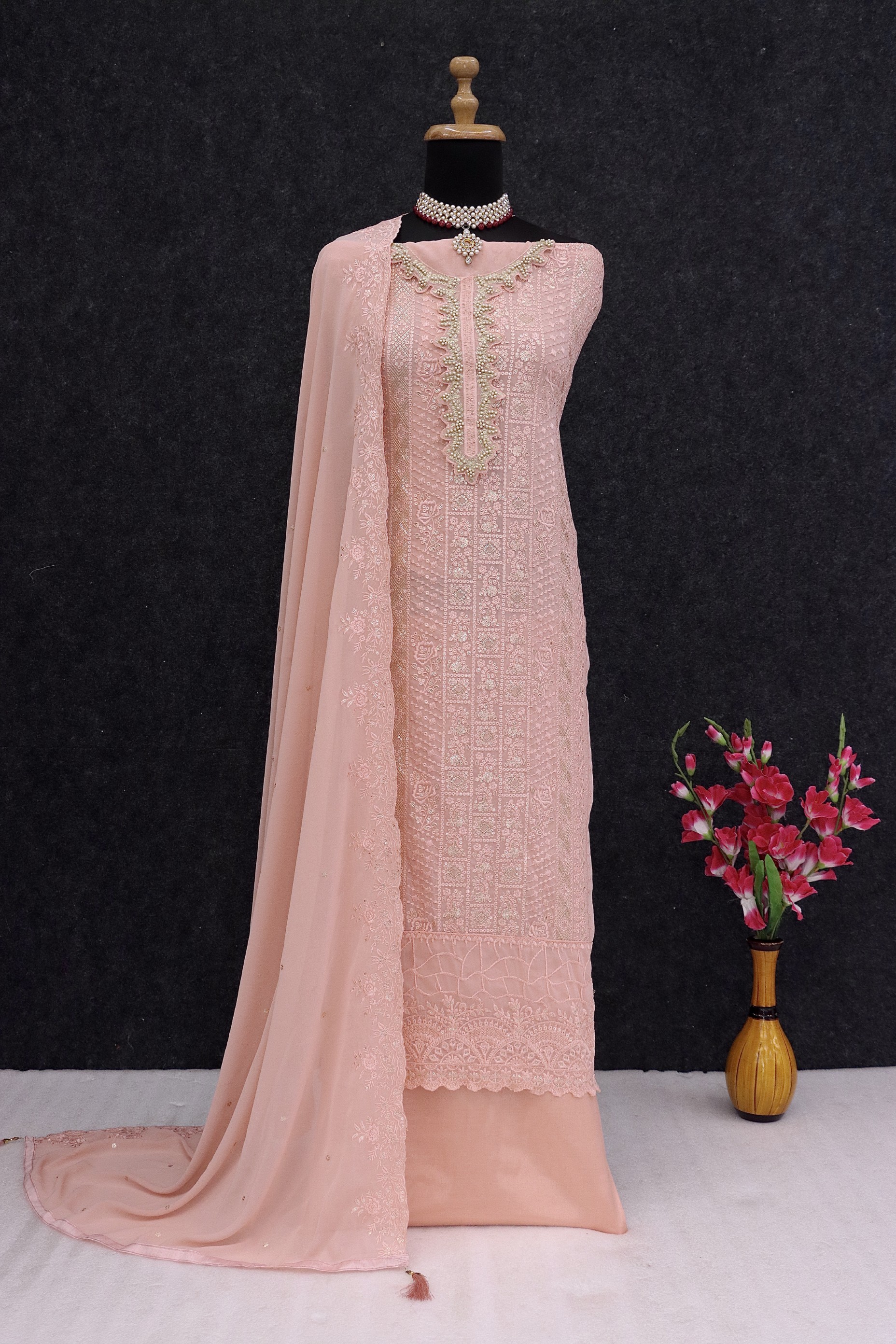 Pink Georgette Semi Stitched Suit with Sequence & Multi Thread Work