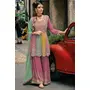 Pink Real Gerogette Sequence Embroidered Readymade Salwar Suit (Free Size)