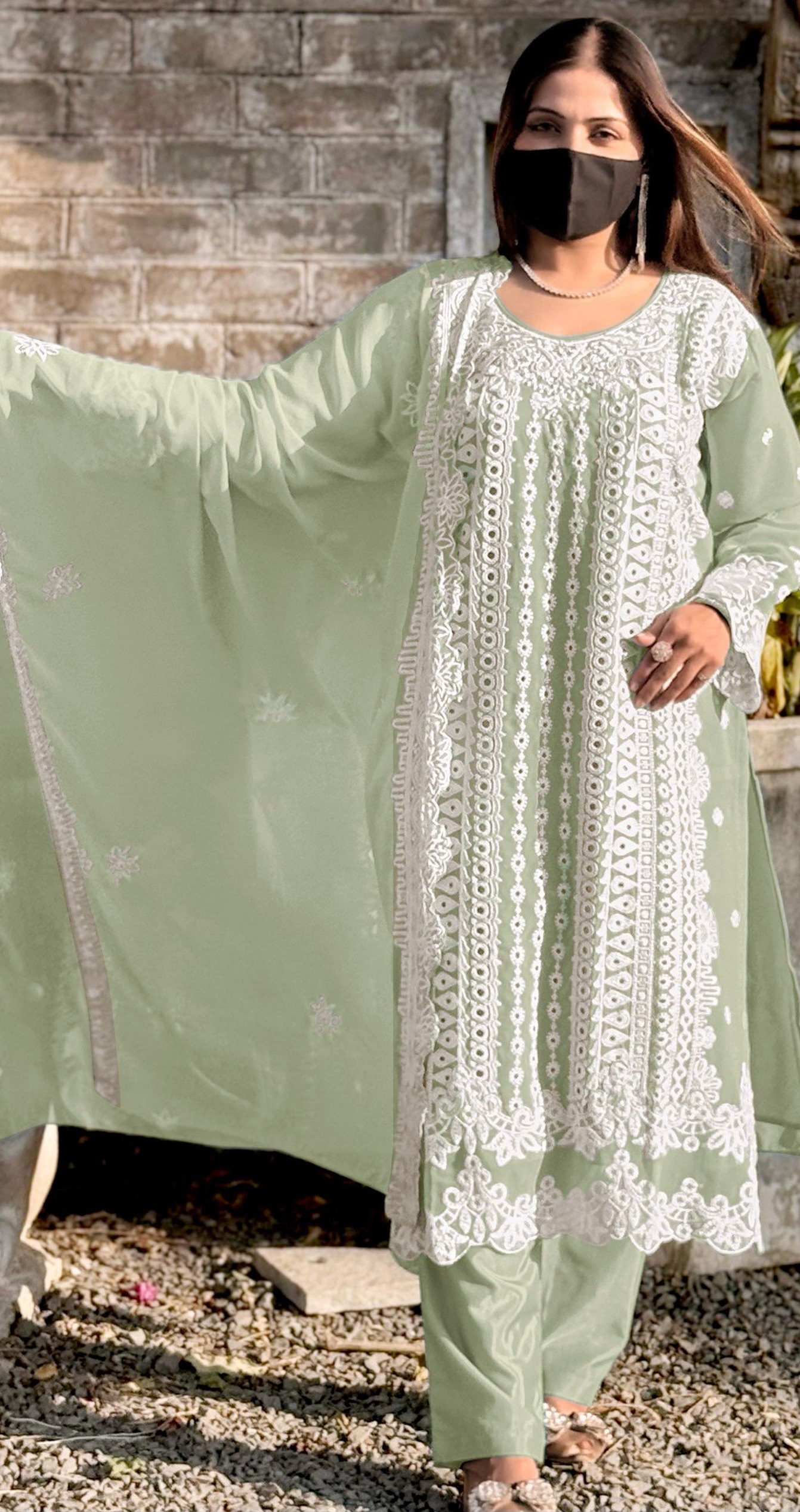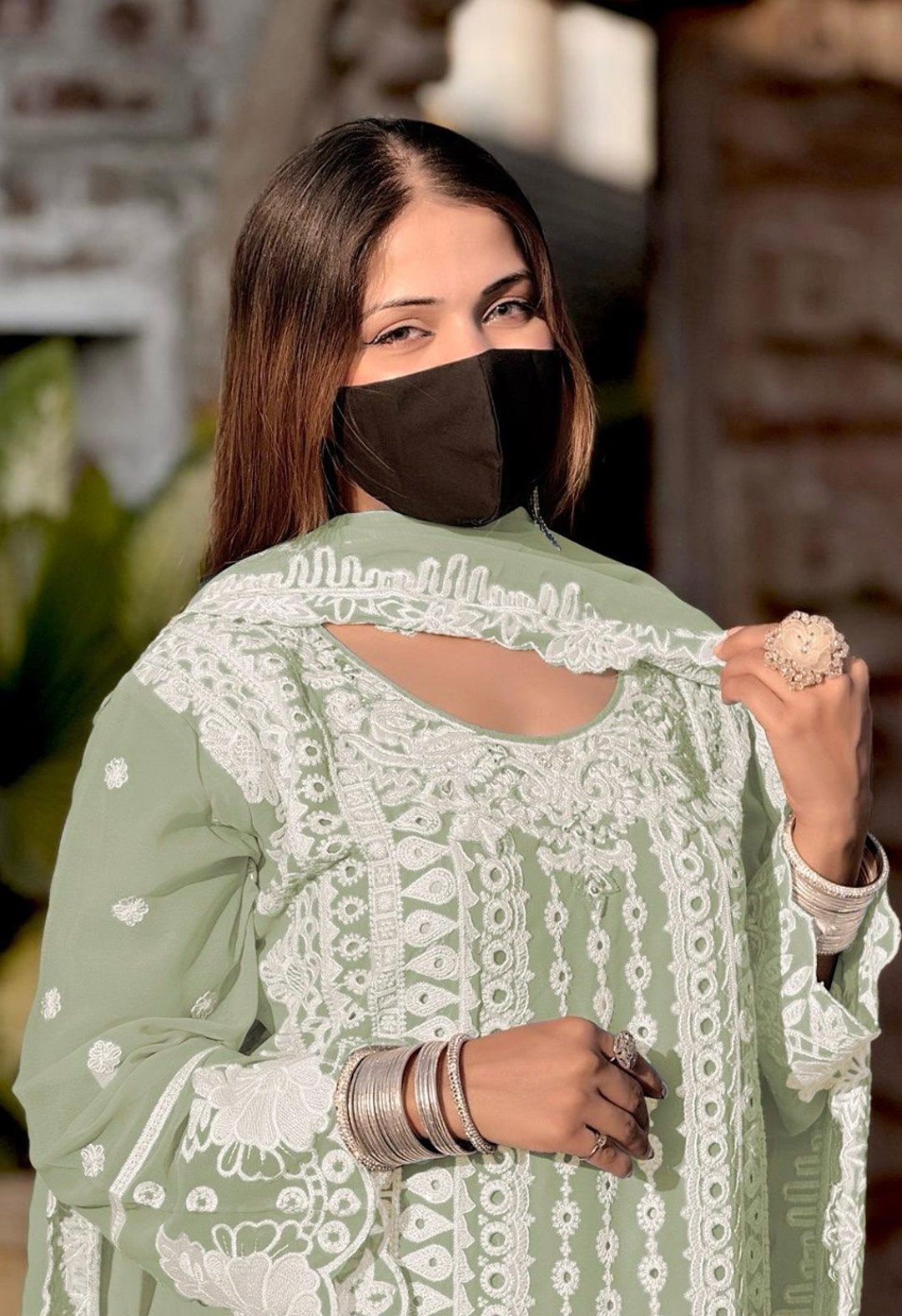 Pista Fox Georgette Embroidered Semi Stitched Salwar Suit