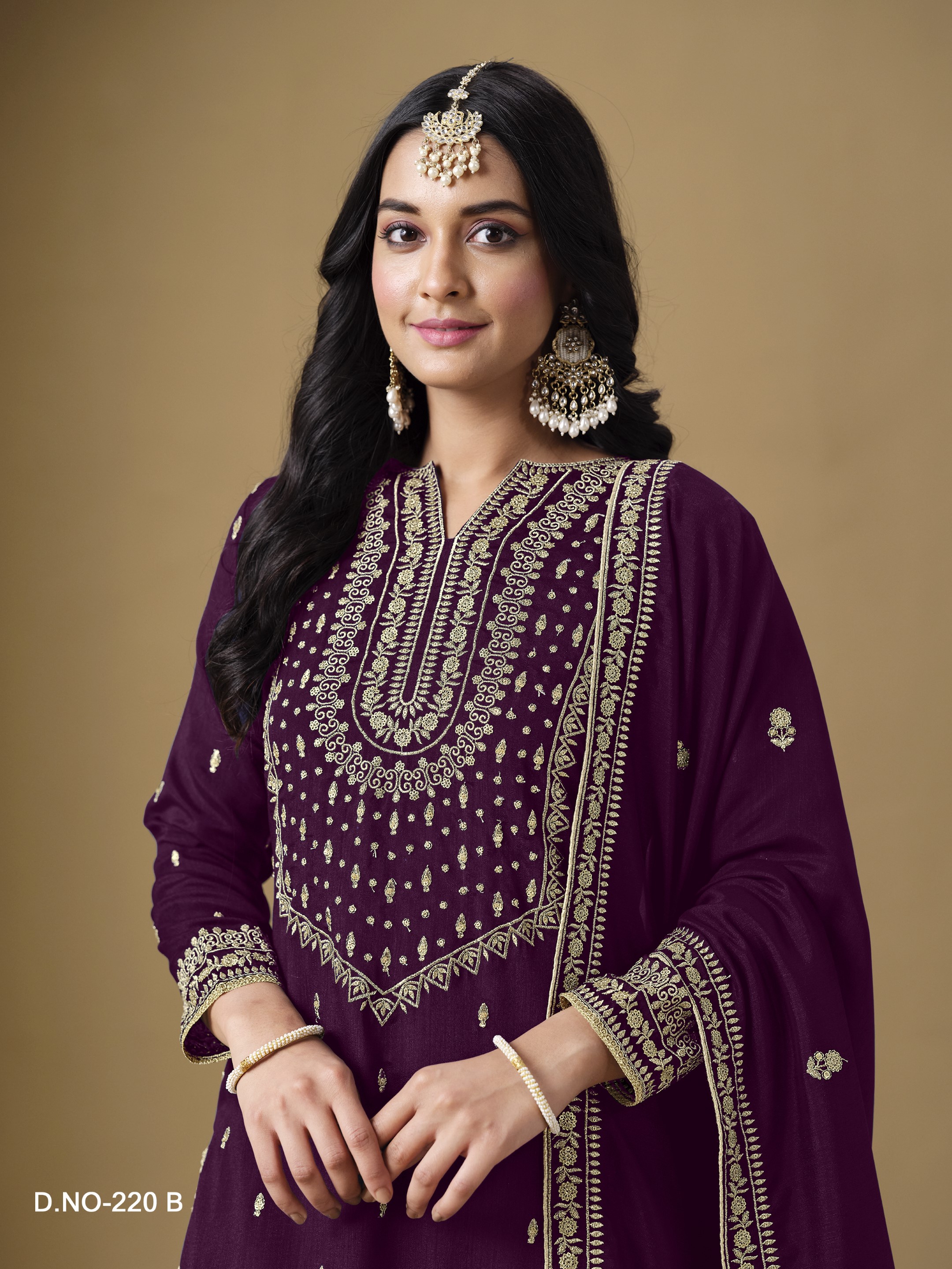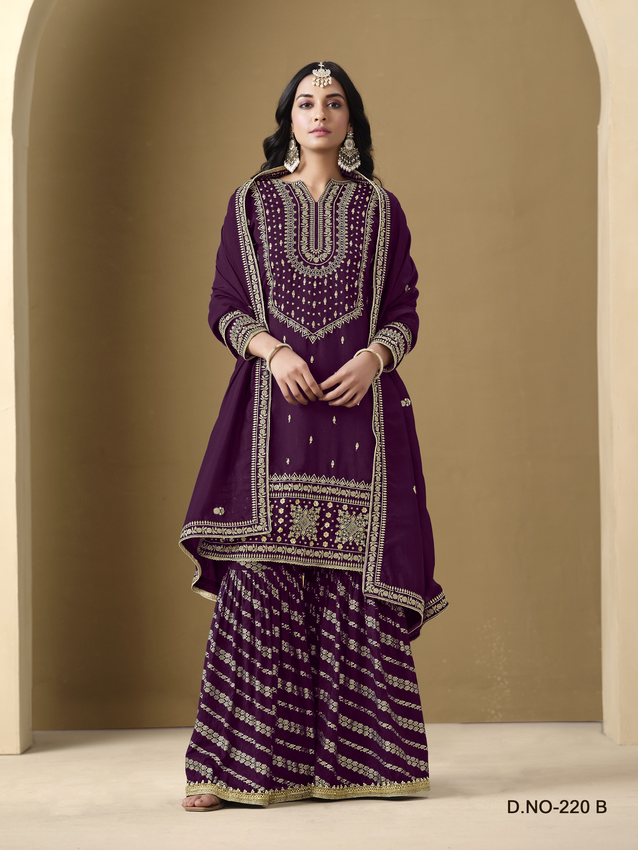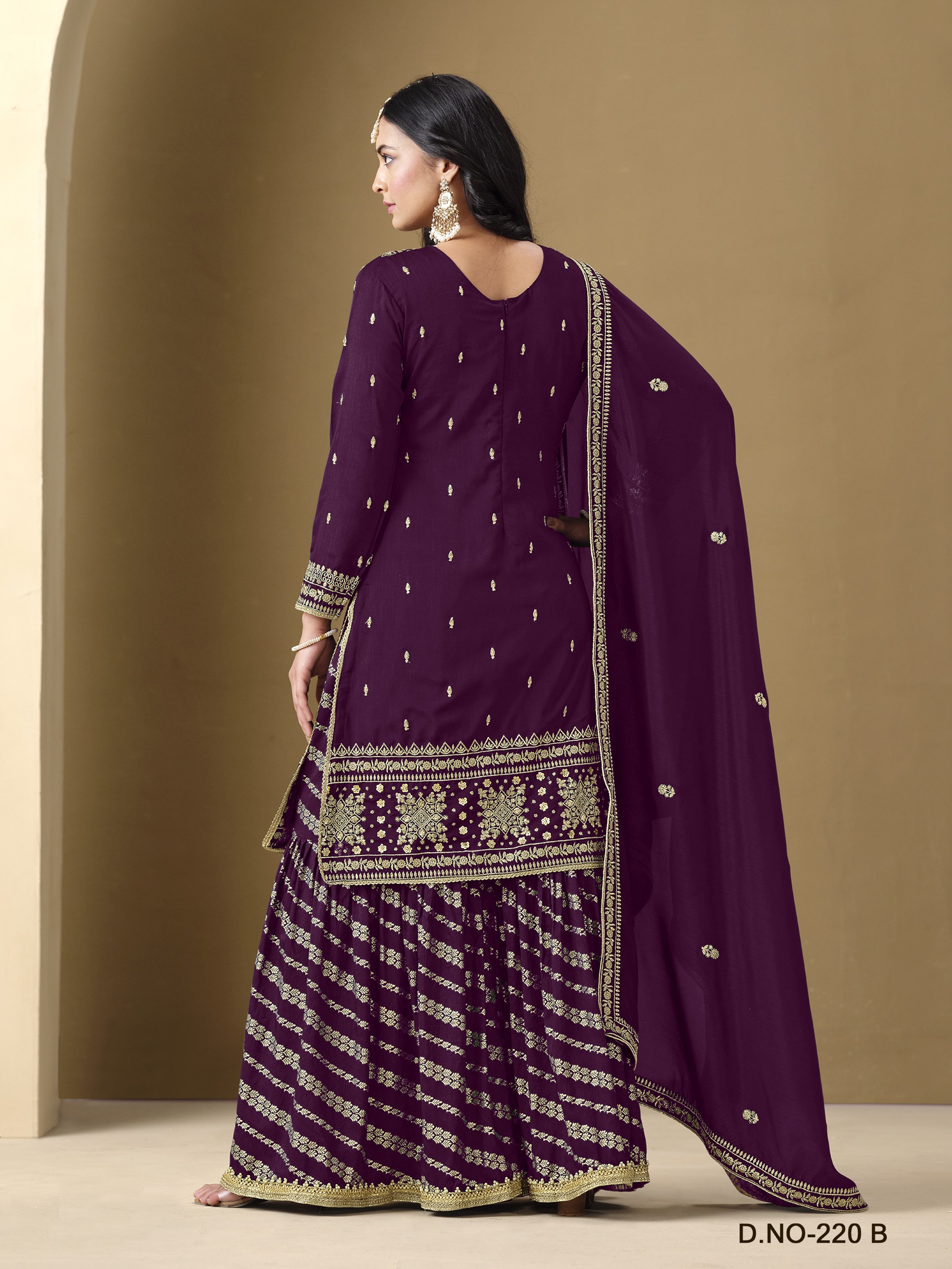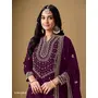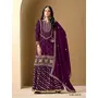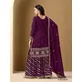Purple Art Silk Embroidered Stitched Sharara Suit (Free Size)