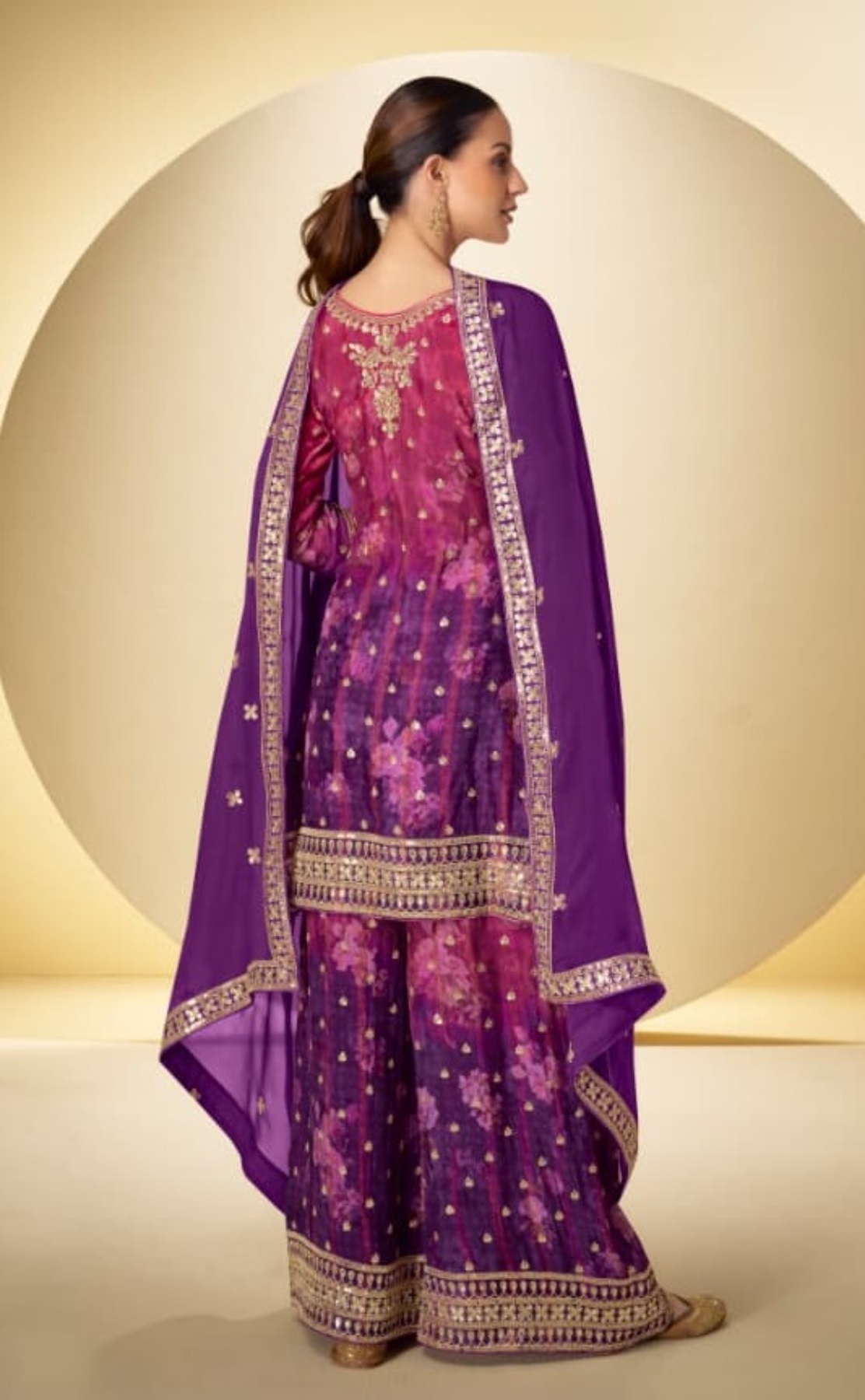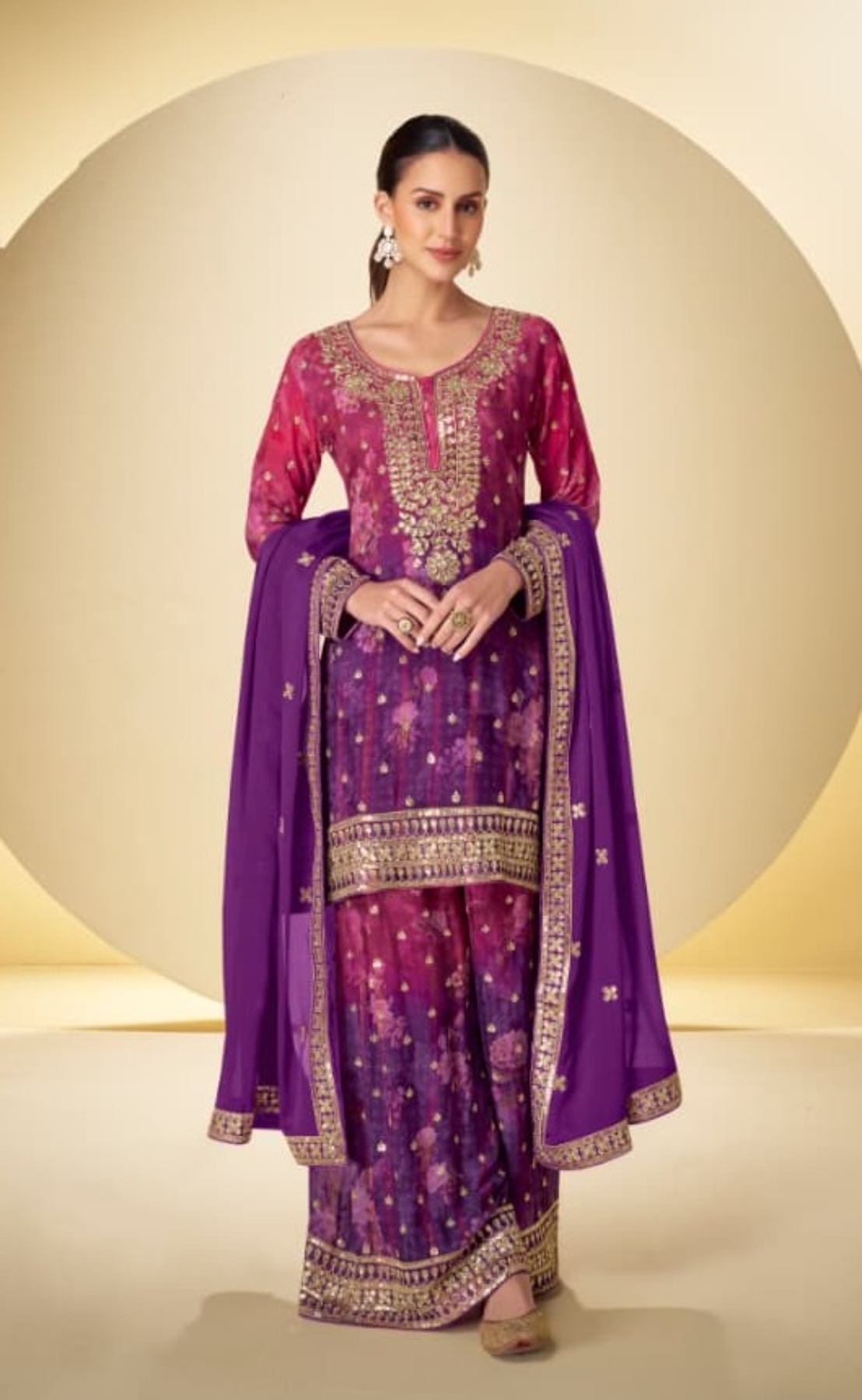 Purple Chinon Silk Readymade Suit with Sequence Work