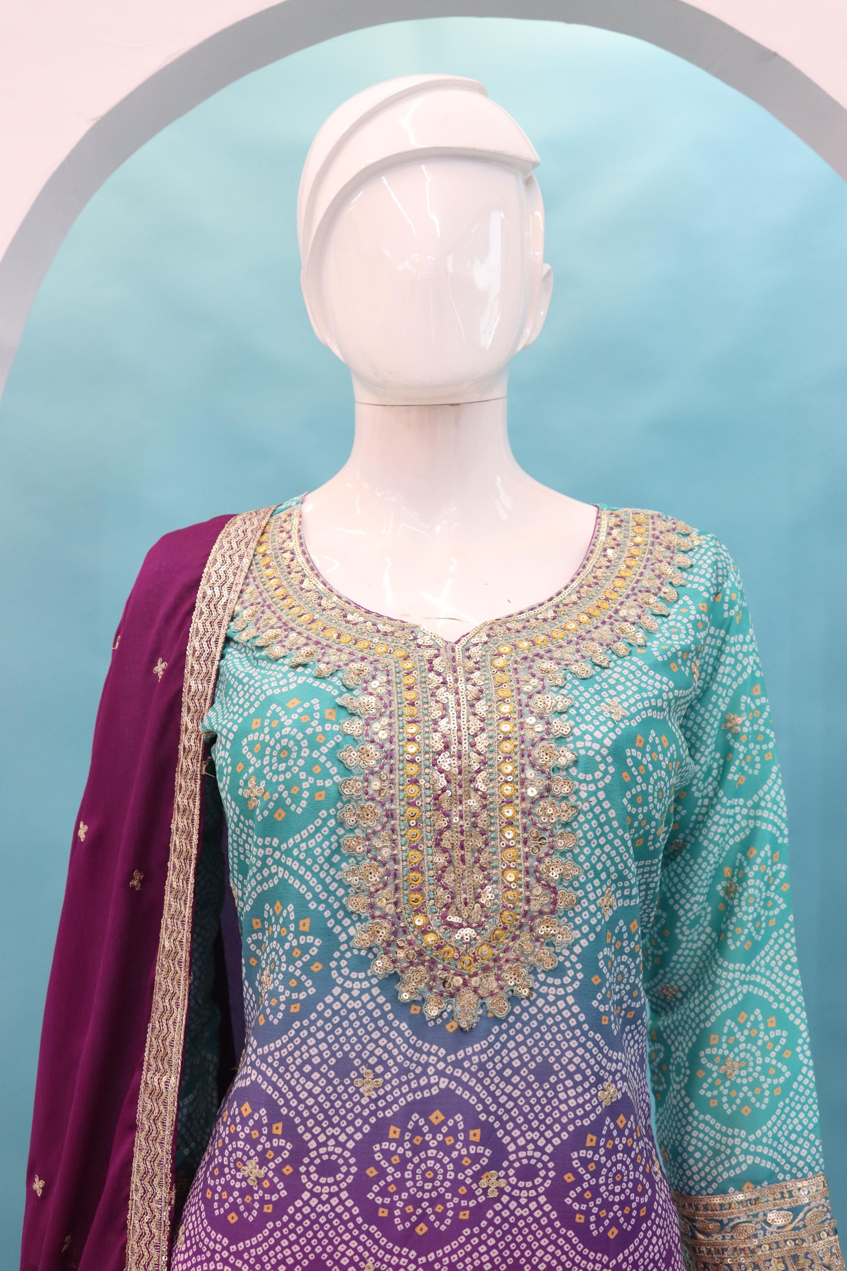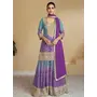 Purple Digital print with Embroderied Silk Stitched Plazo Suit(Free Size)