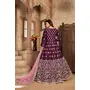 Purple Embroidered Art Silk Semi Stitched Anarkali Suit