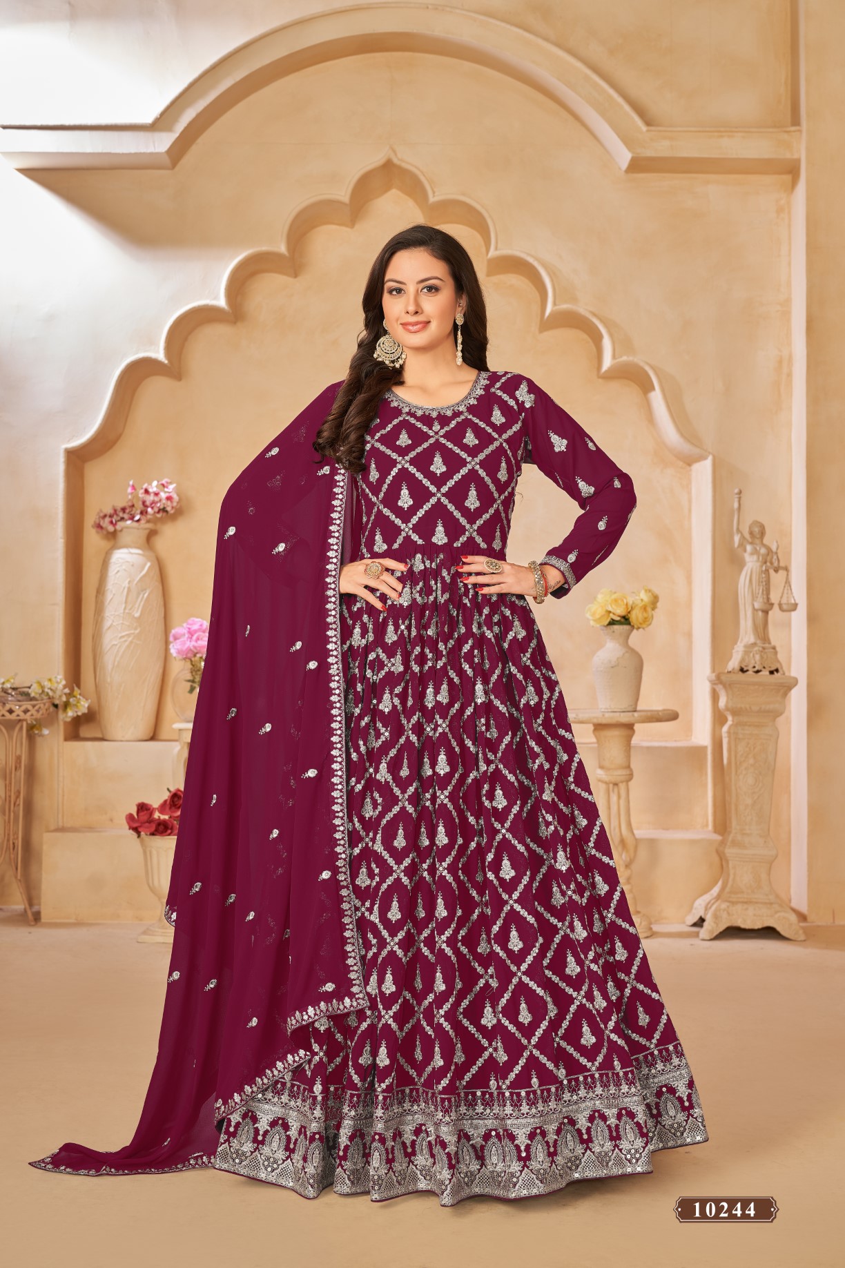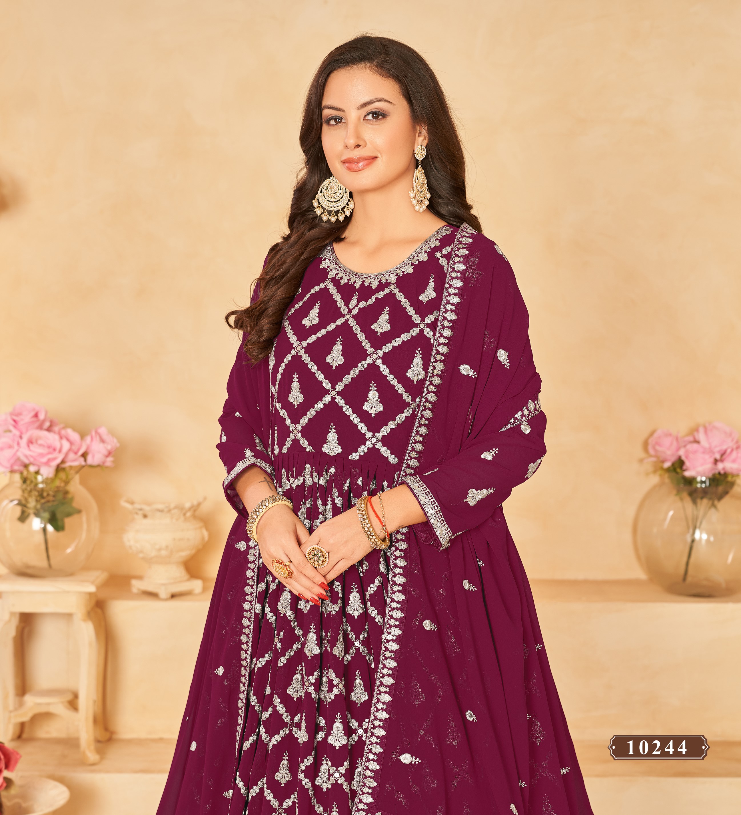 Purple Embroidered Faux Georgette Semi Stitched Anarkali Suit