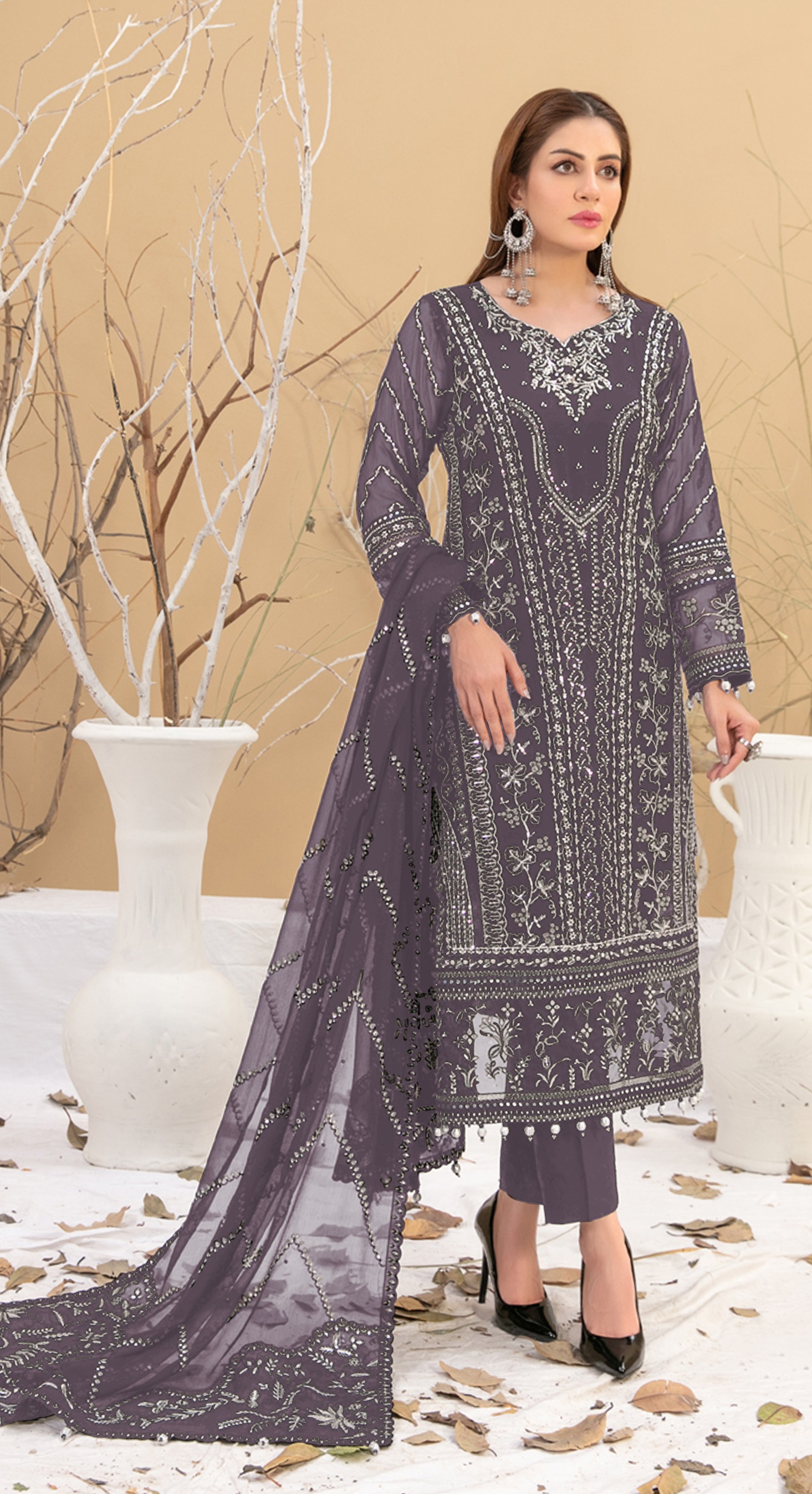 Purple Embroidered Faux Georgette Semi Stitched Salwar Suit