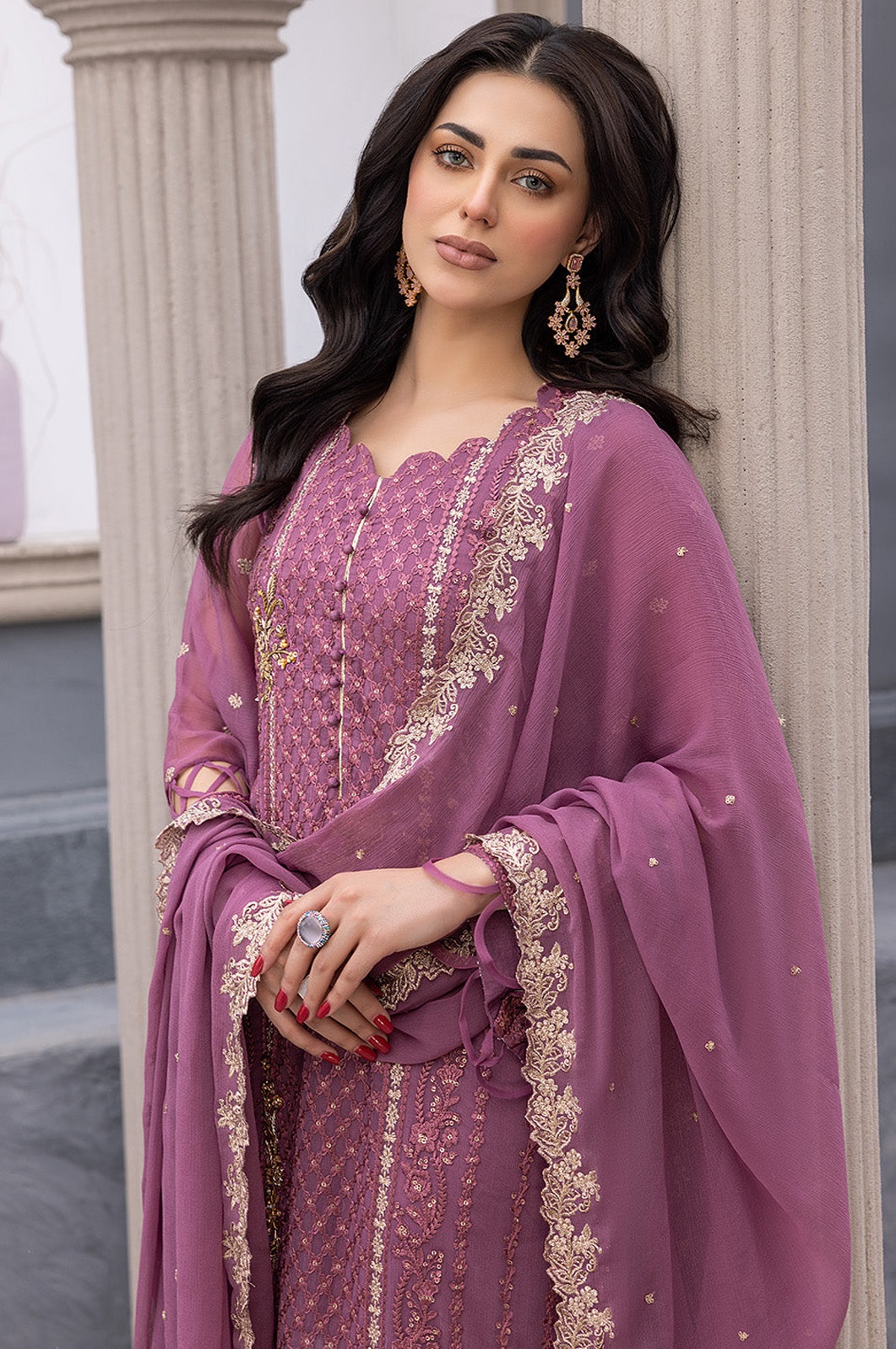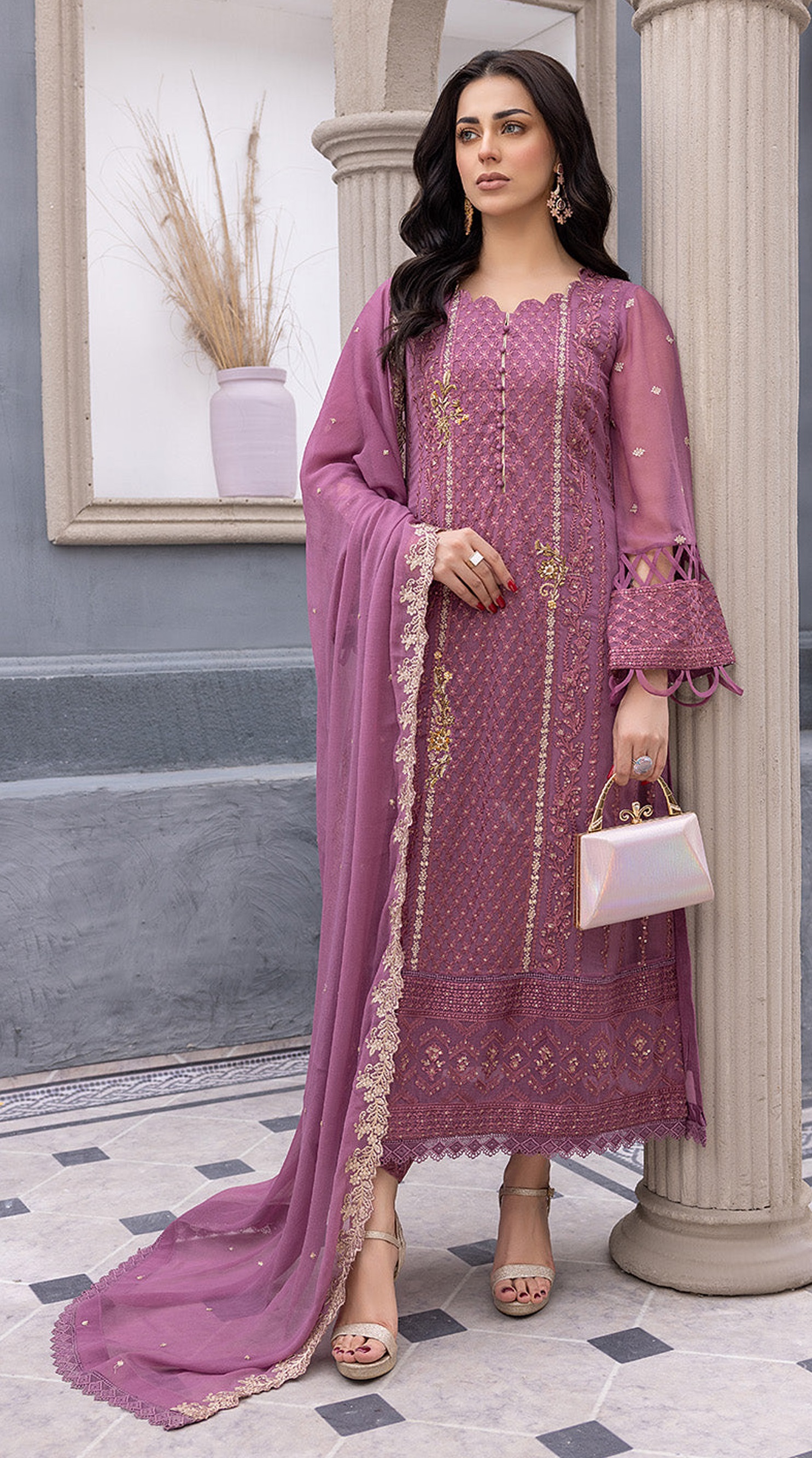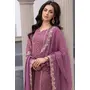 Purple Embroidered Faux Georgette Semi Stitched Salwar Suit
