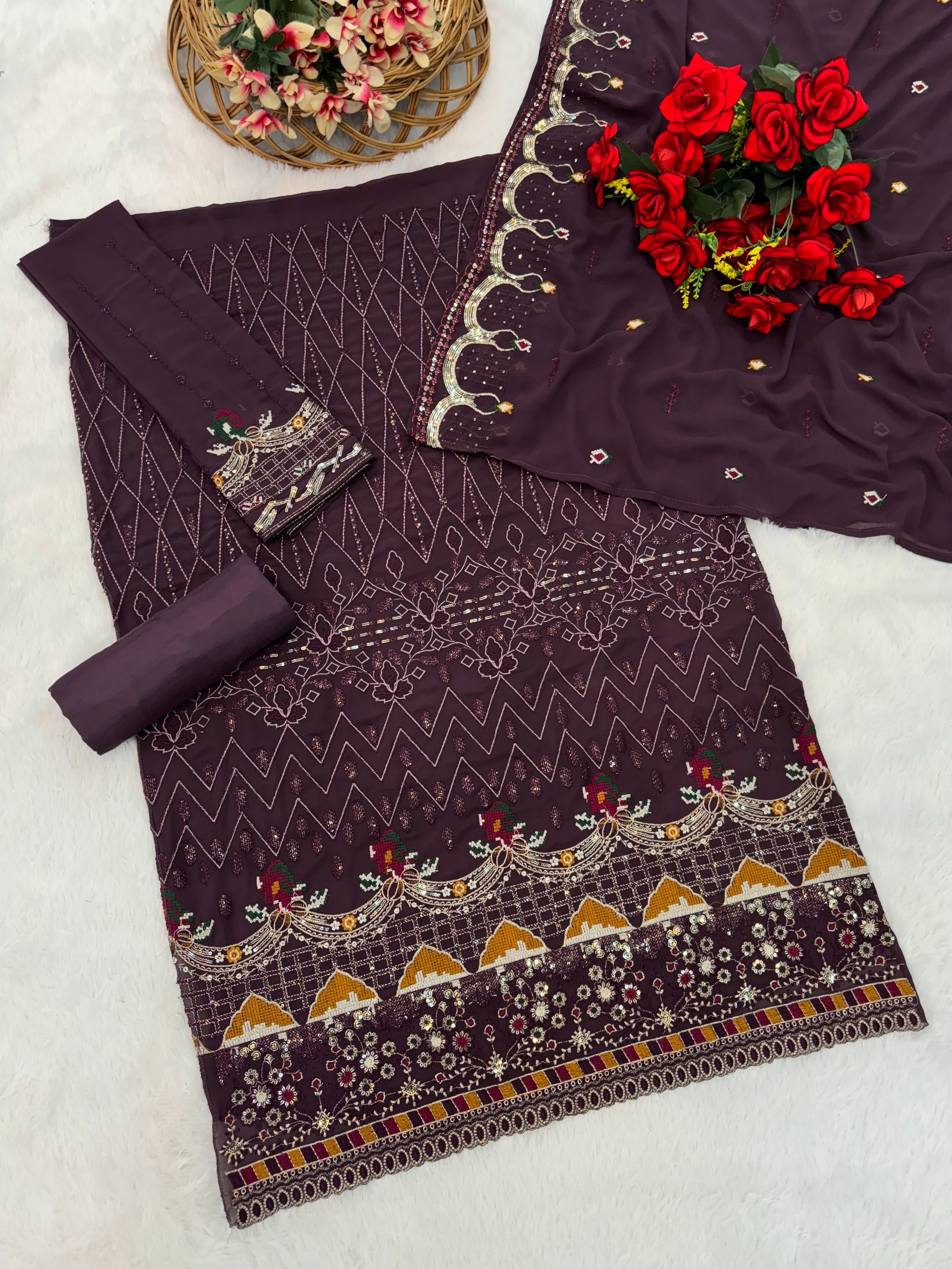Anaita presents a beautifully crafted ethnic wear collection designed to add grace and elegance to your wardrobe. Made from carefully selected premium fabrics, each outfit offers a comfortable fit with a rich and stylish appearance. The designs are enhanced with fine embroidery, sequins, thread work, mirror work, or subtle hand embellishments that create a refined ethnic look without being heavy.Perfect for festivals, weddings, parties, family functions, and special occasions, these outfits are easy to style and suitable for both day and evening wear. Whether you prefer a modern designer touch or a traditional ethnic feel, Anaita outfits are created with attention to detail and quality finishing to ensure long-lasting wear and timeless appeal.