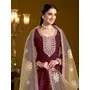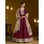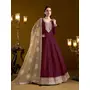 Purple Embroidered Jacquard Chanderi Semi Stitched Anarkali Suit