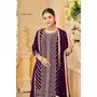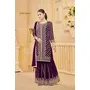 Purple Faux Georgette Embroidered Stitched Salwar Suit (Free Size)