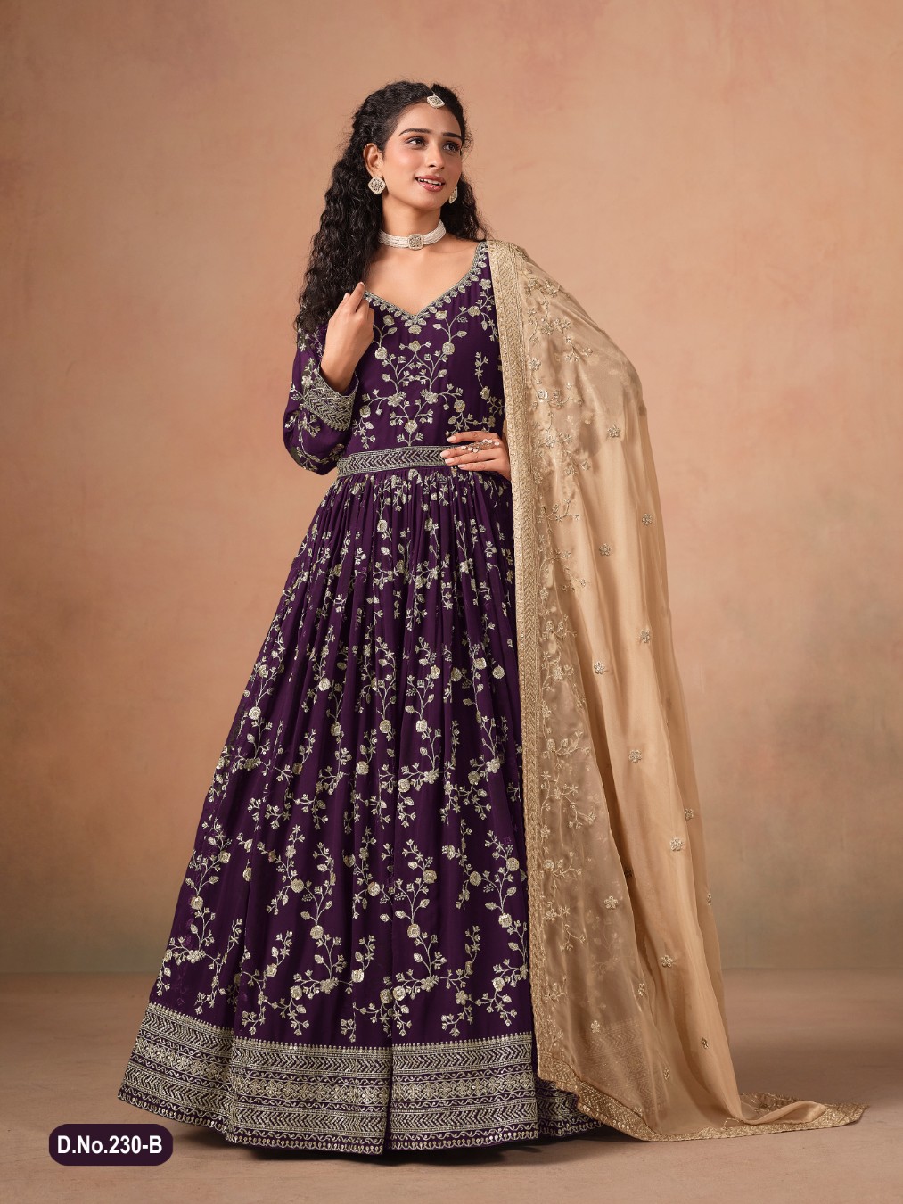 Purple faux georgette jacquard embroidered work semi stitched anarkali suit