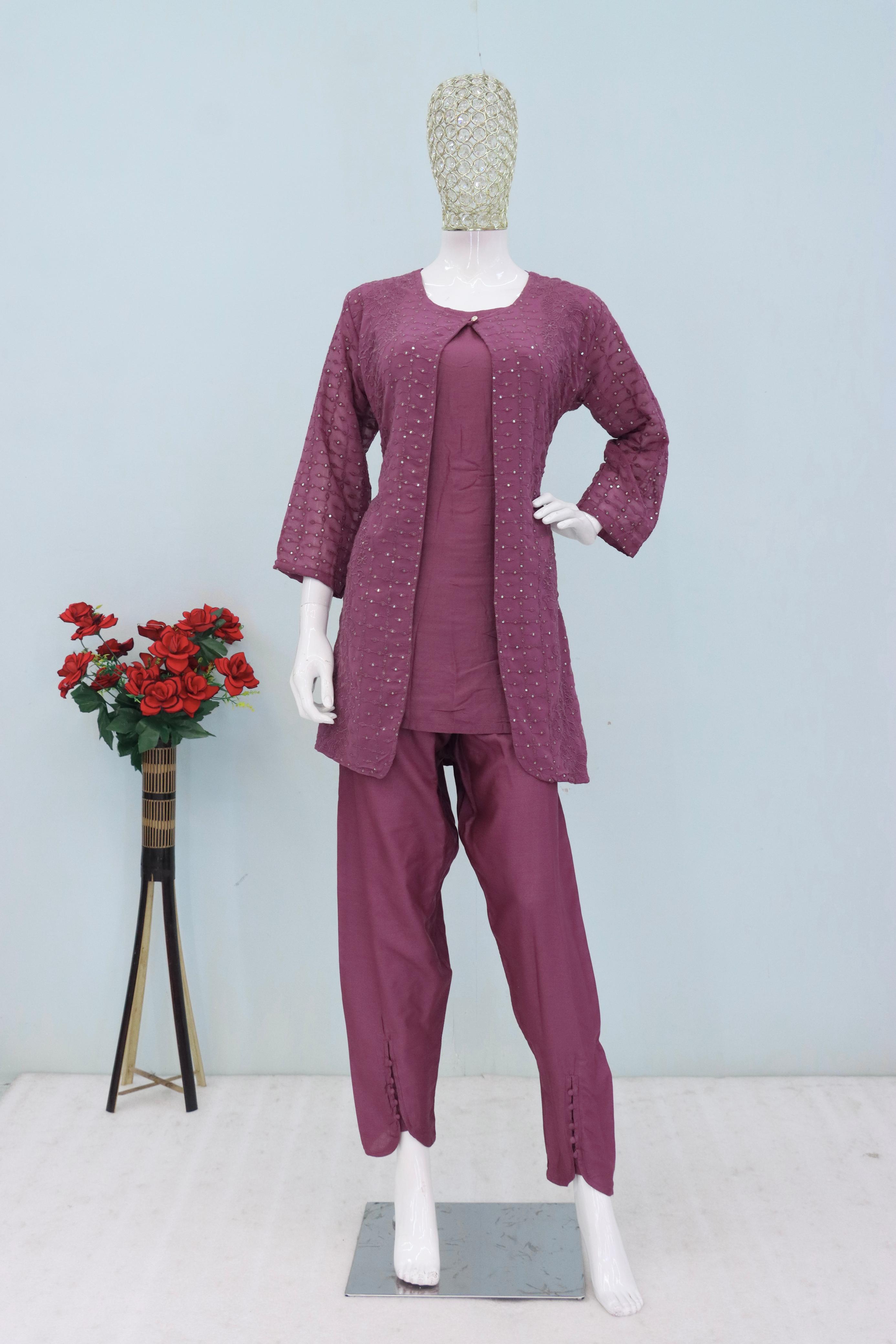 Purple Faux Georgette Readymade 2 Piece Set with Embroidery Work