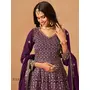 Purple faux georgette semi stitched plazzo suit with heavy embroidery work