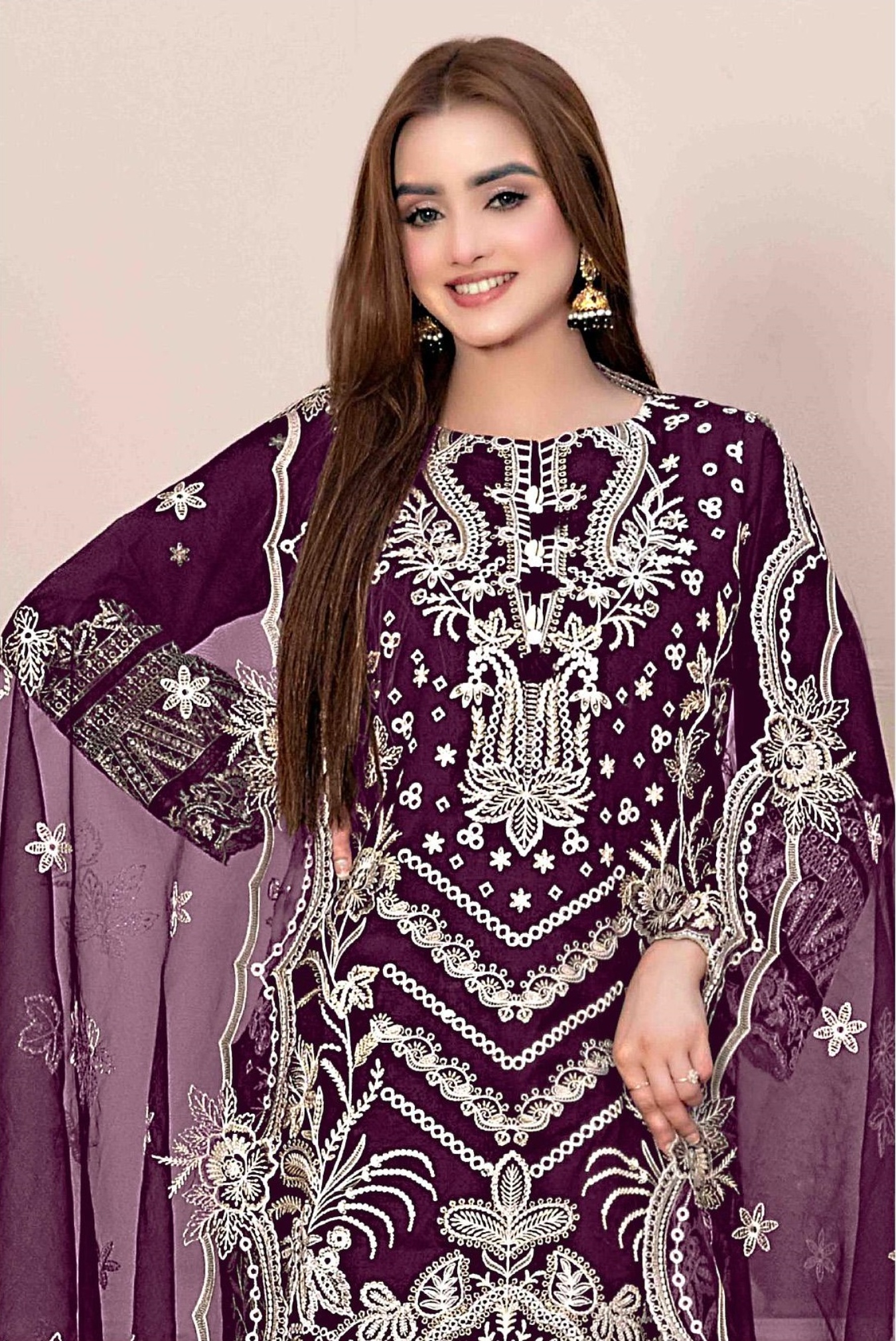 Purple Faux Georgette Semi Stitched Suit with Embroidery Work