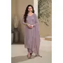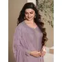 Purple Heavy Natural Crepe Semi Stitched Suit with Embroidery & Zarkhan Work