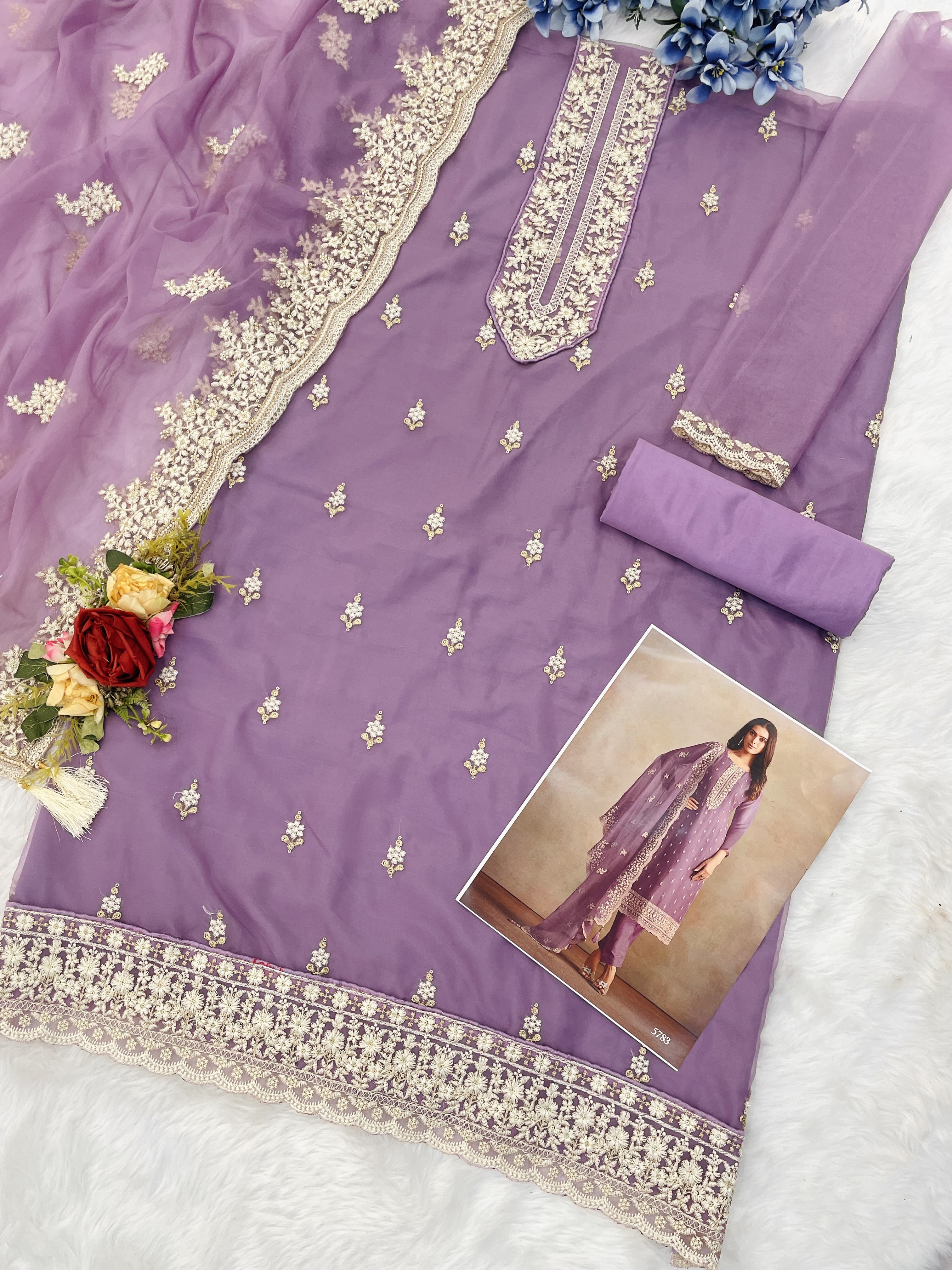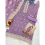 Purple Heavy Orgenza With Embroidery Straight Salwar Suit