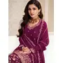Purple Real Gerogette Sequence Embroidered Readymade Salwar Suit (Free Size)