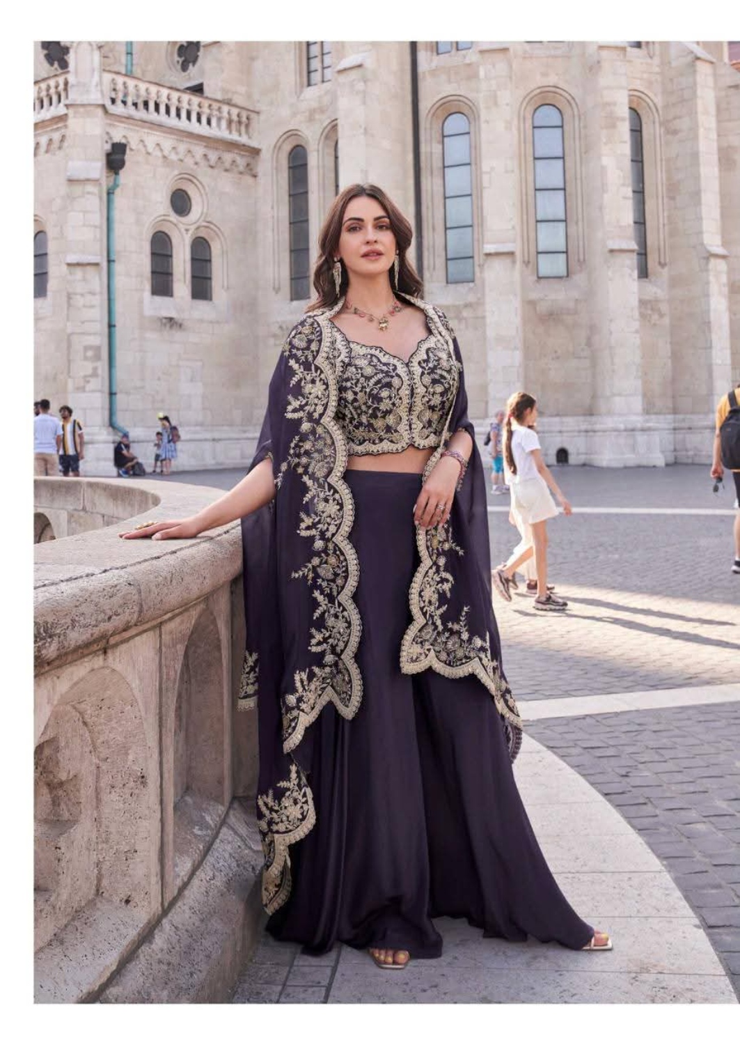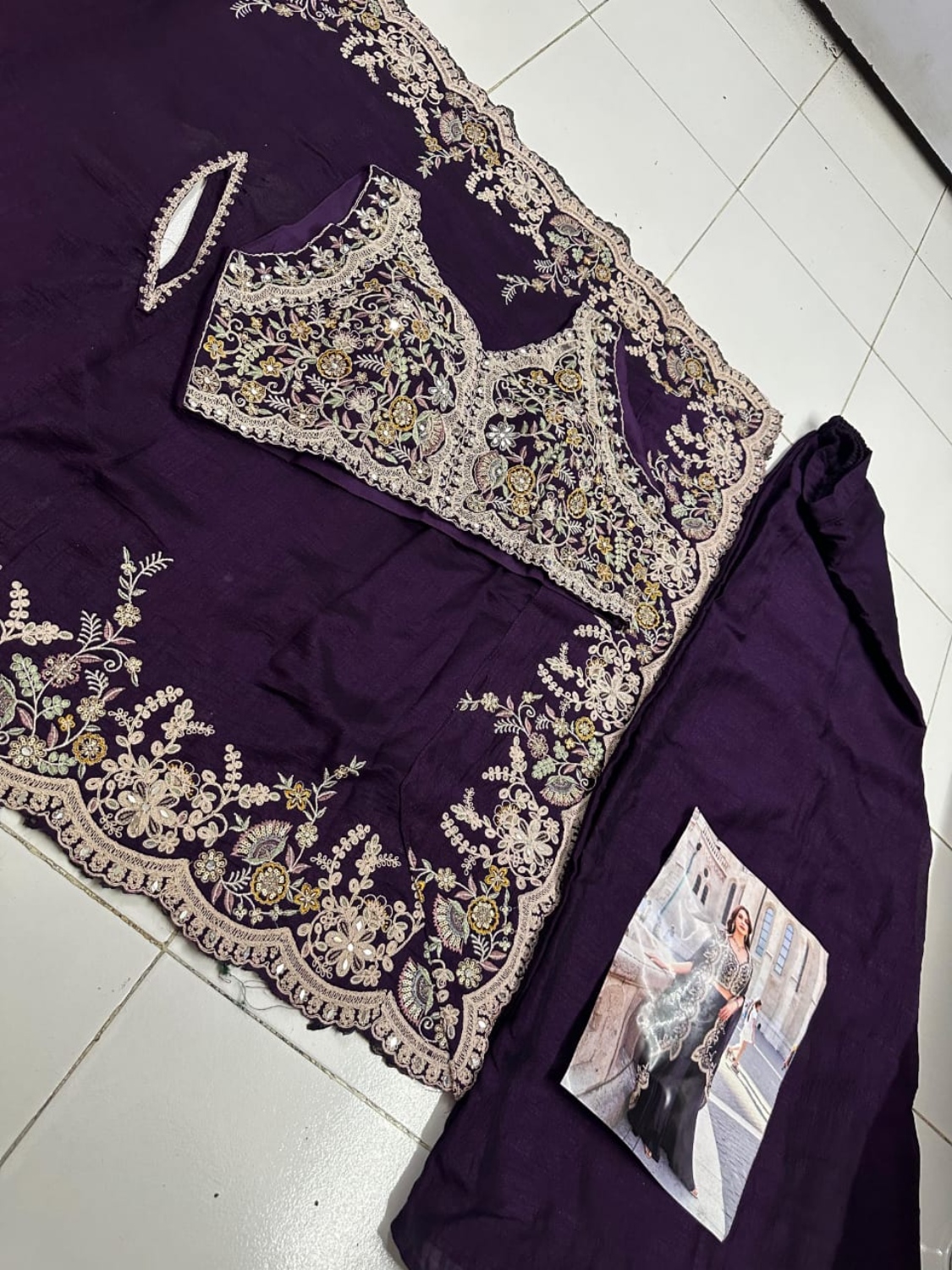 Purple Real Premium Silk Stitched Shrug Suit with Embroidery Work