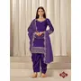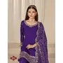 Purple Roman Silk Semi Stitched Suit with Embroidery & Real Mirror Work