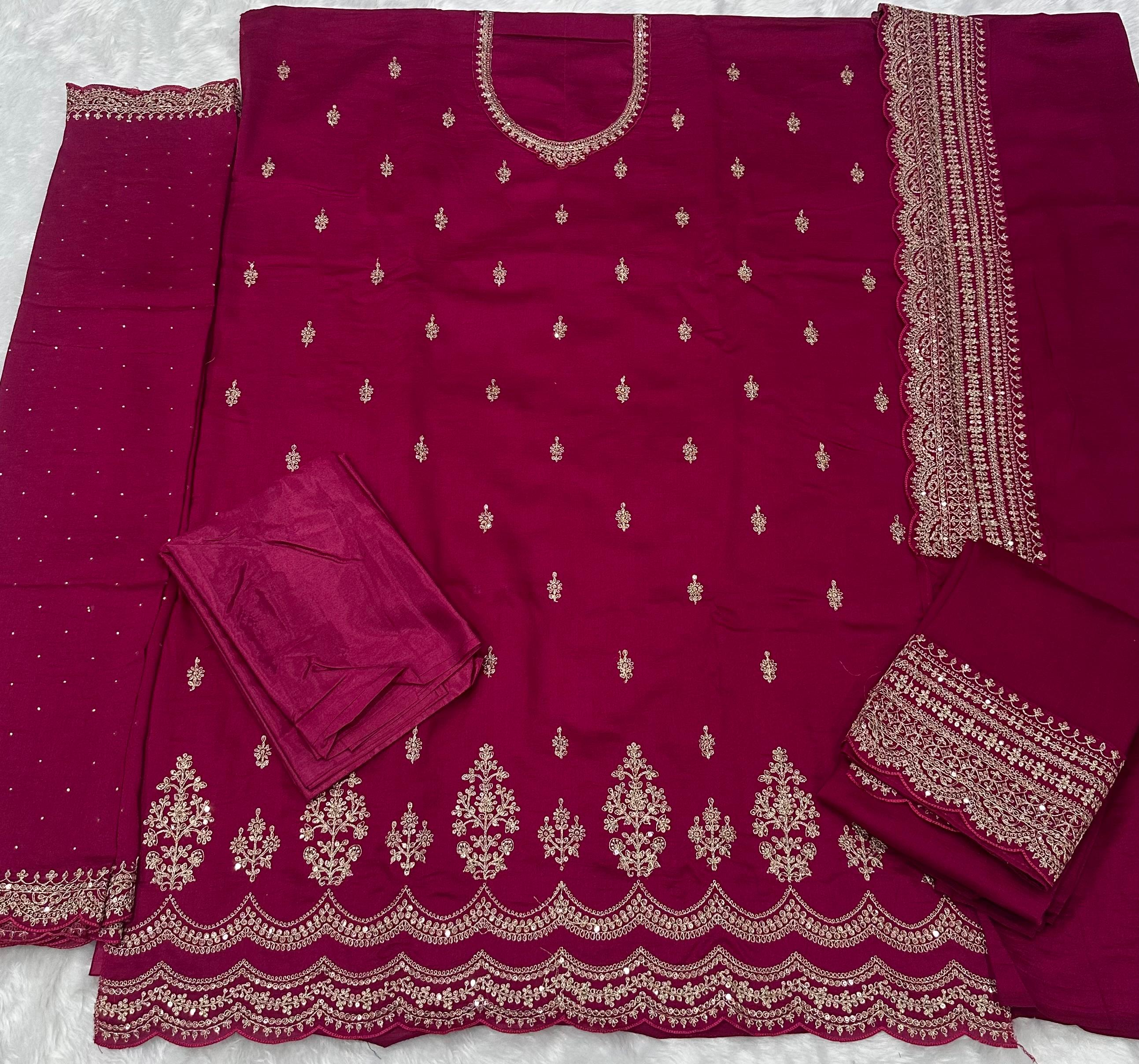 Rani Pink Silk Georgette Semi Stitched Suit with Embroidery Sequence Work