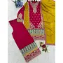 Red Chinon Semi Stitched Suit with Embroidery Codding Sequence Work