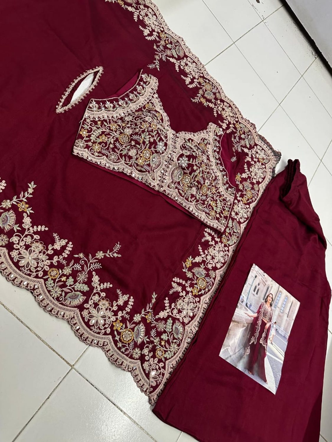 Red Real Premium Silk Stitched Shrug Suit with Embroidery Work