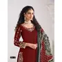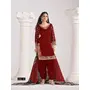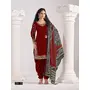 Red Roman Silk Semi Stitched Suit with Embroidery & Real Mirror Work