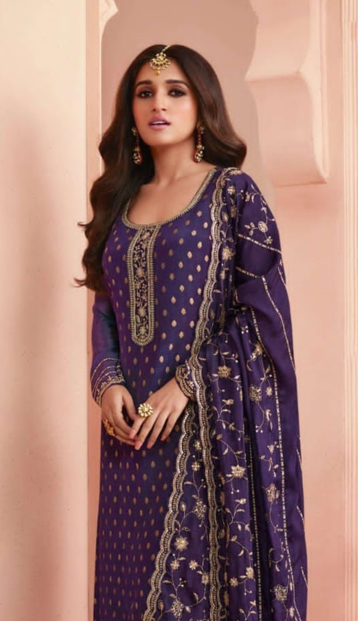 Royal Blue Dola Jecard Silk Sequence Embroidered Semi-Stitched Salwar Suit