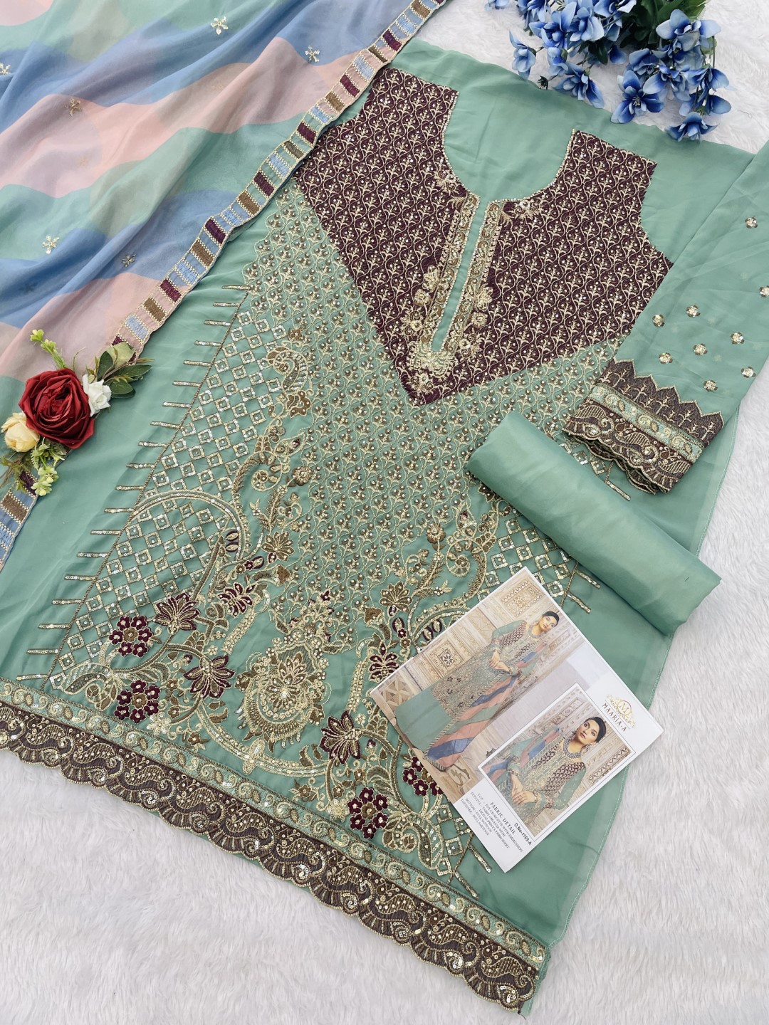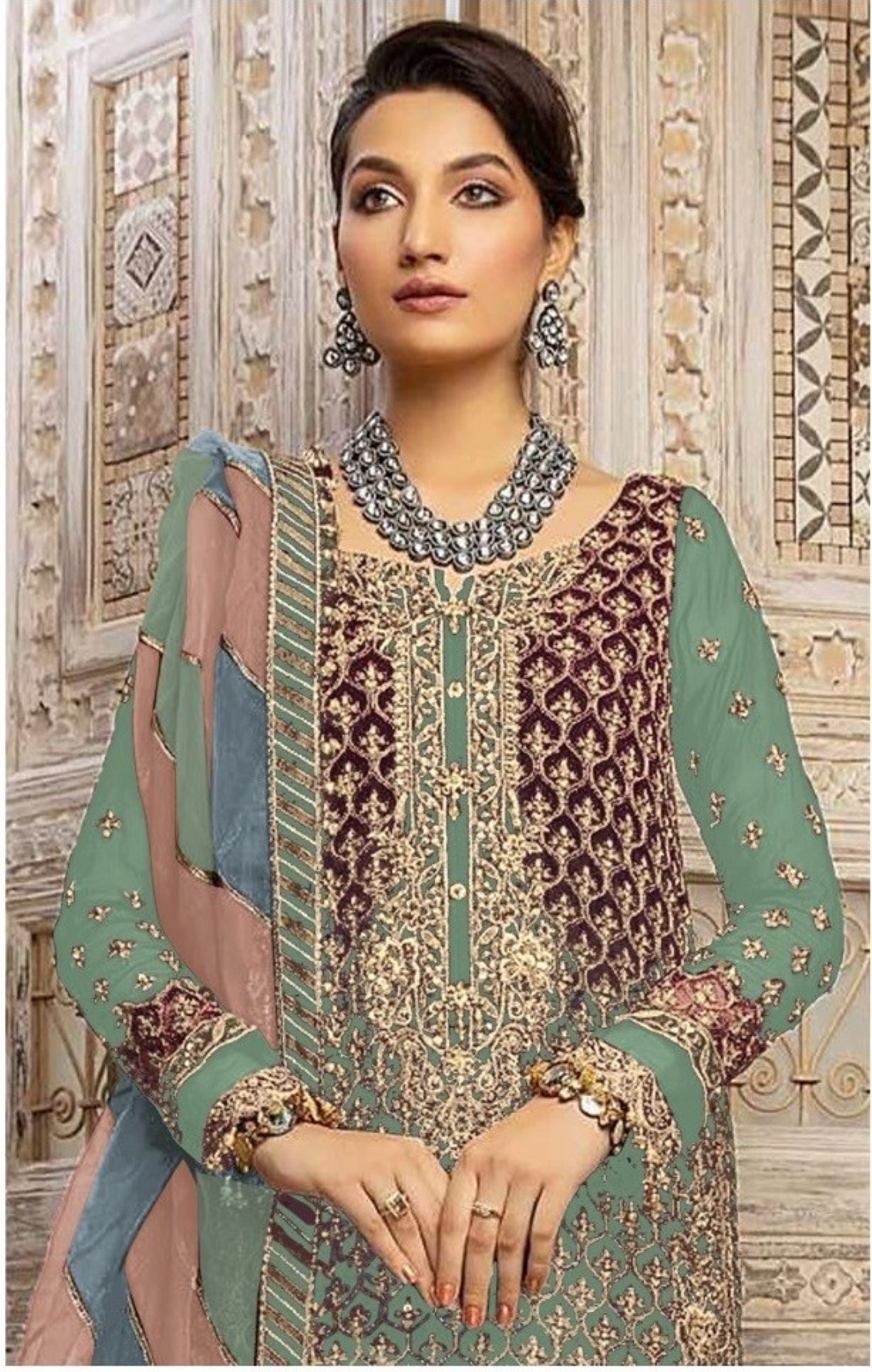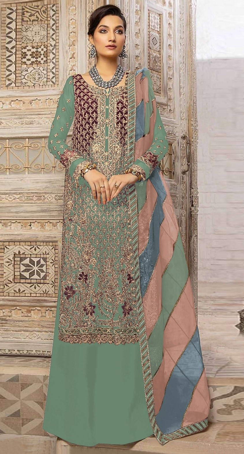 Sea Green Heavy Fox Georgette Embroidery Plazzo Suit