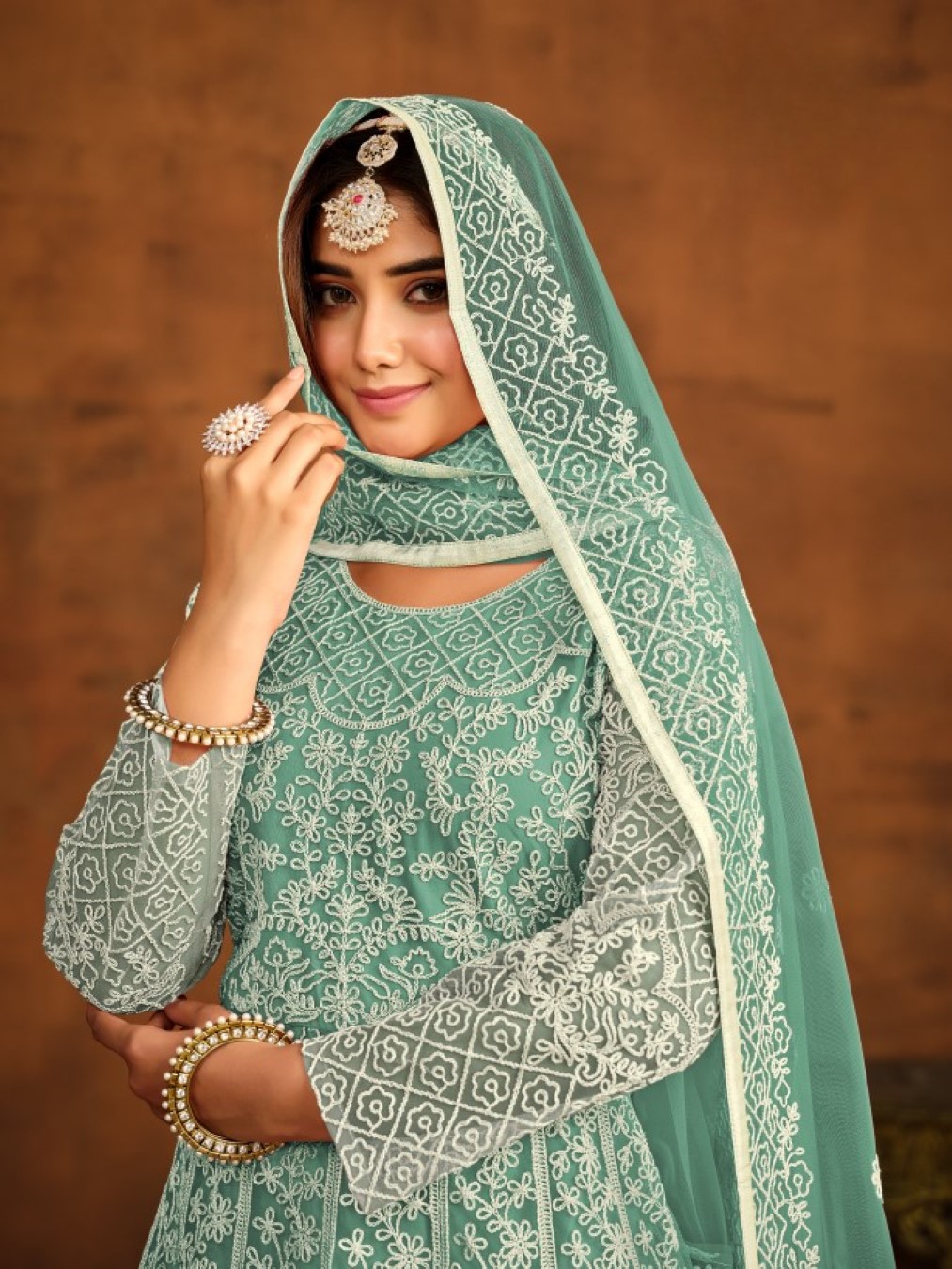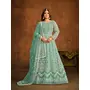 Sky Blue Embroidered Net Semi Stitched Anarkali Suit
