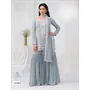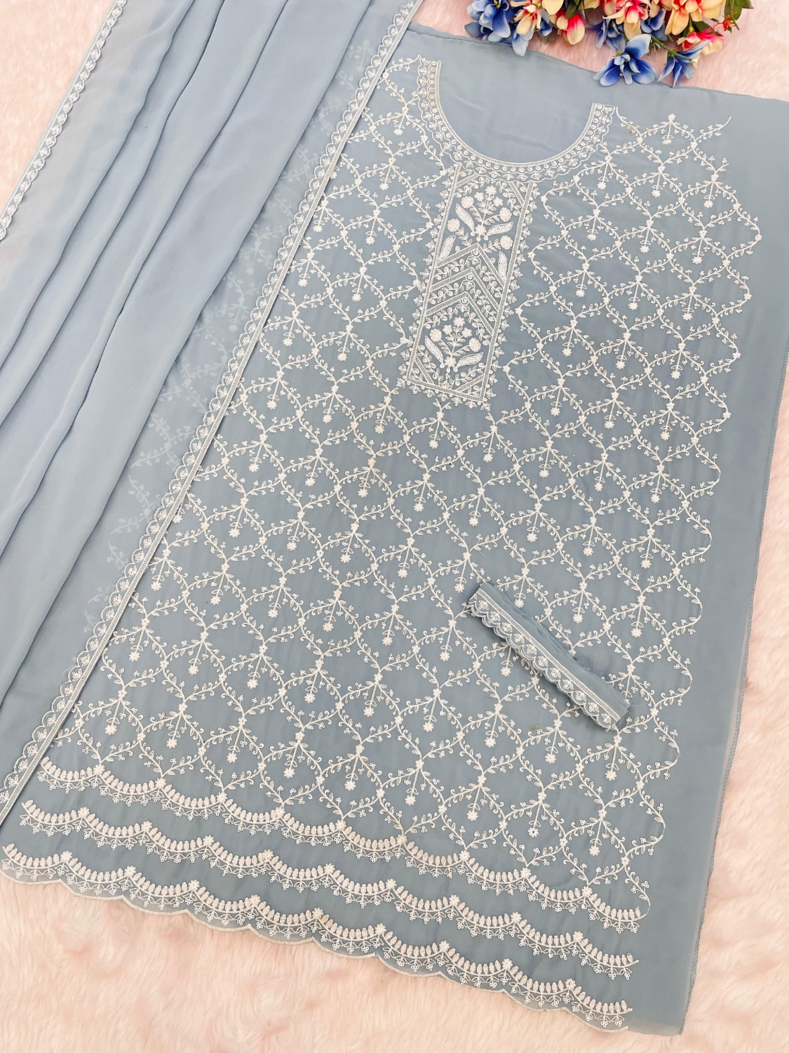 Sky Blue Faux Georgette Semi Stitched Suit with Embroidery Cotton Thread & Sequence Work