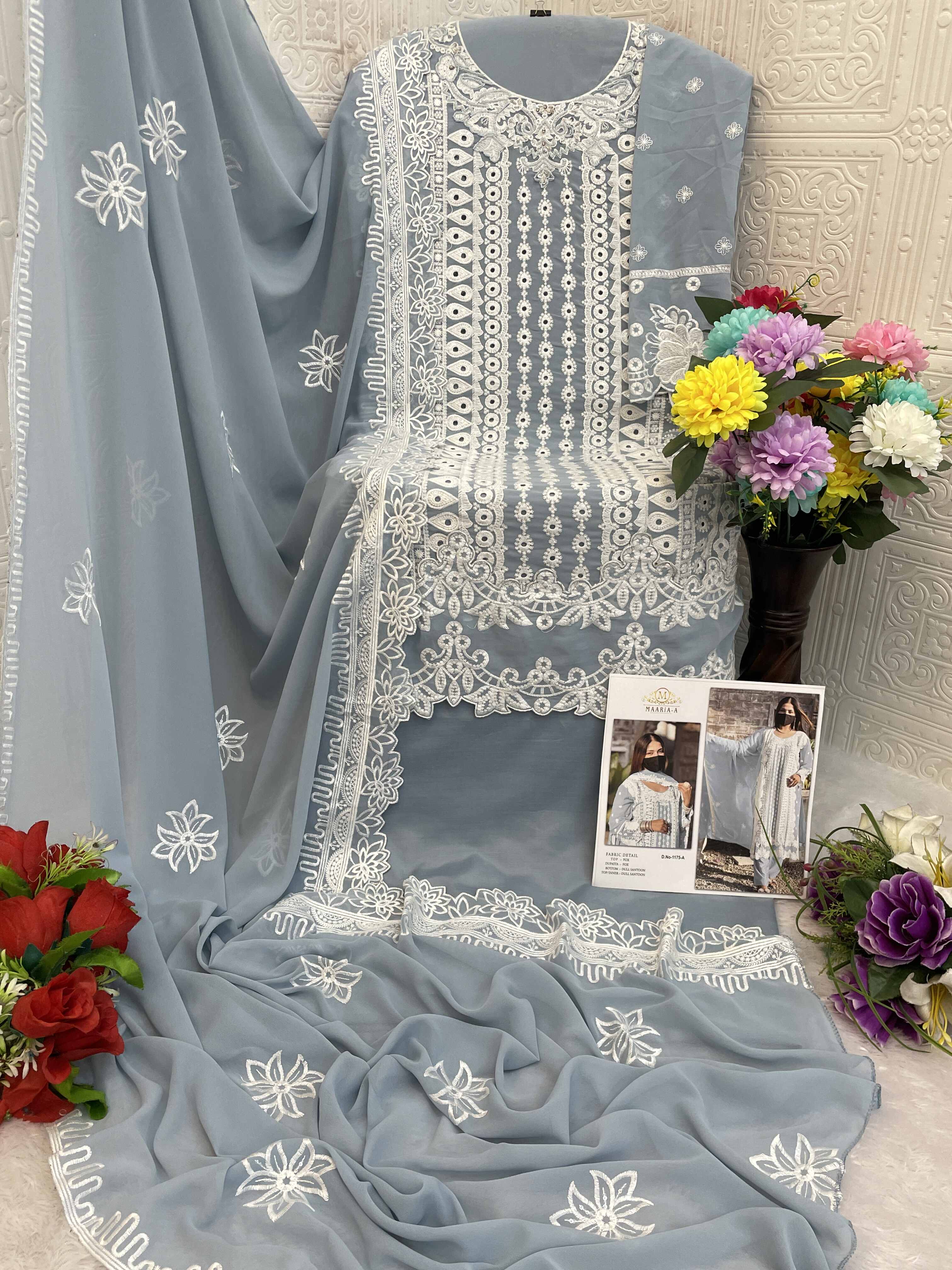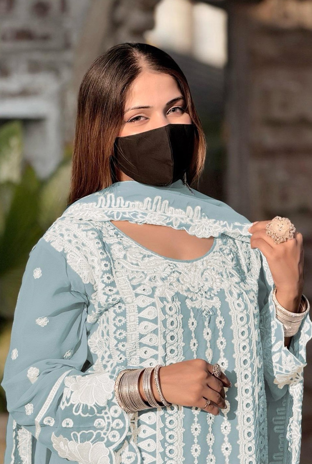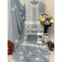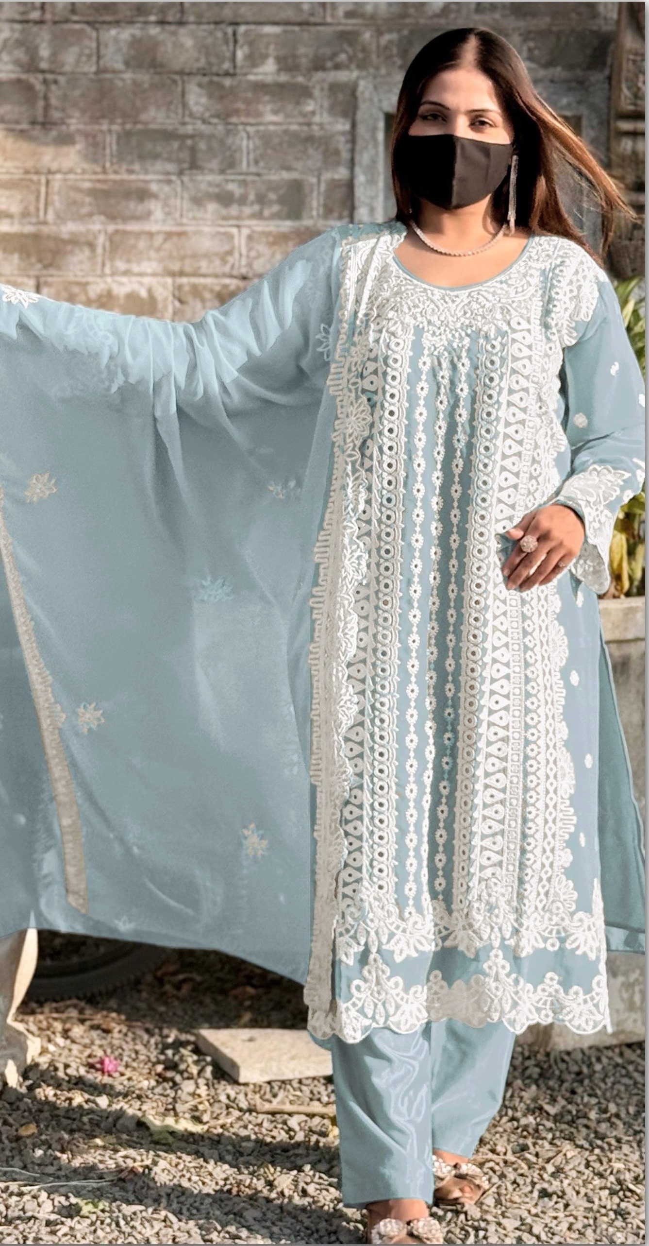 Sky Blue Fox Georgette Embroidered Semi Stitched Salwar Suit