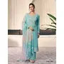 Sky Blue Moonga Silk Semi Stitched Suit with Embroidery Sequence Work